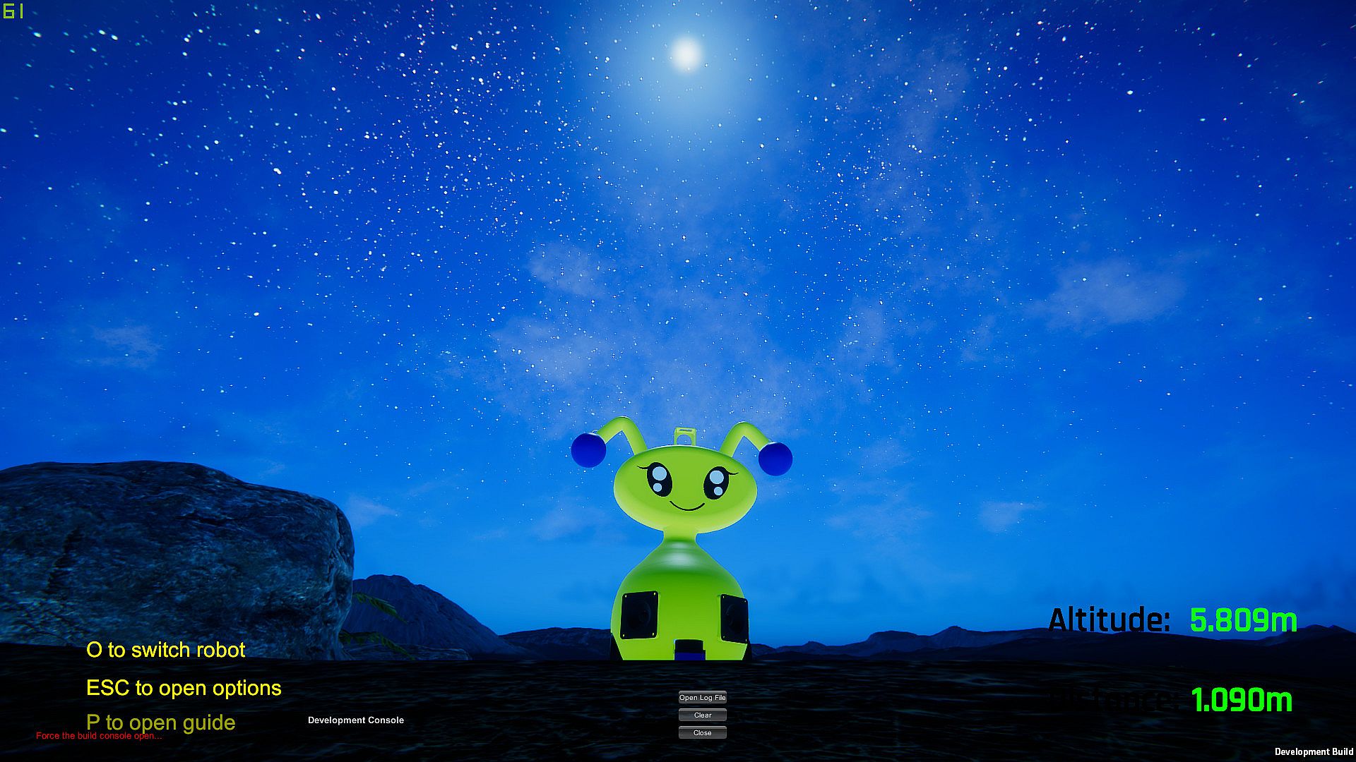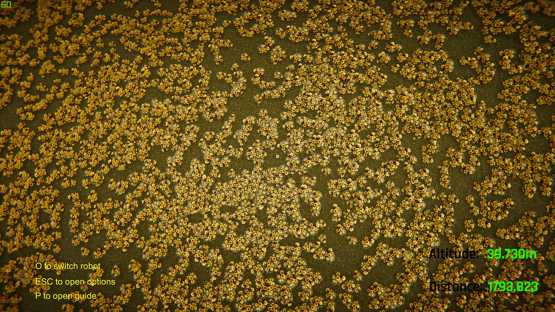You can also change the view from a third-person view to a robot vision(first-person view).