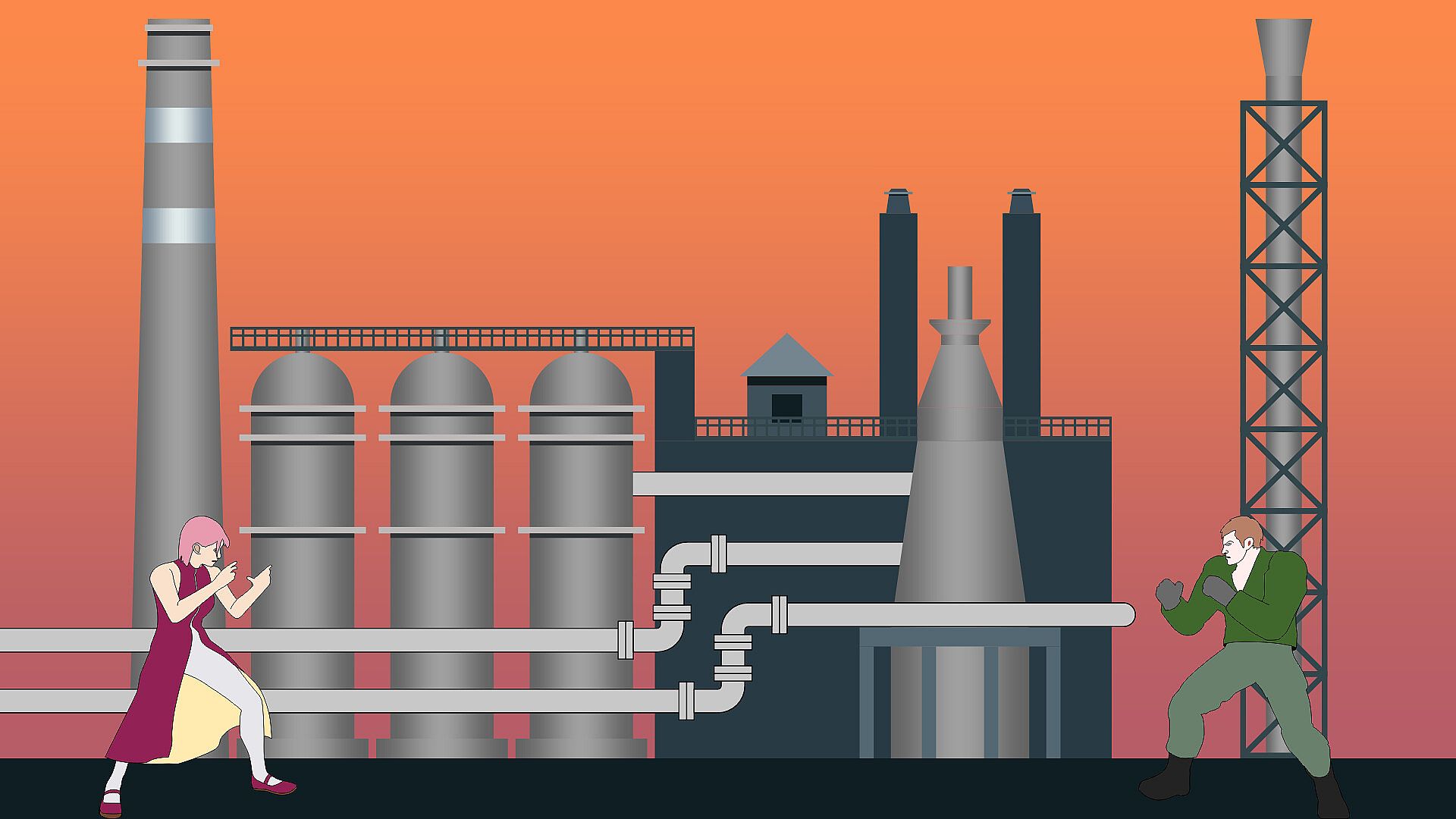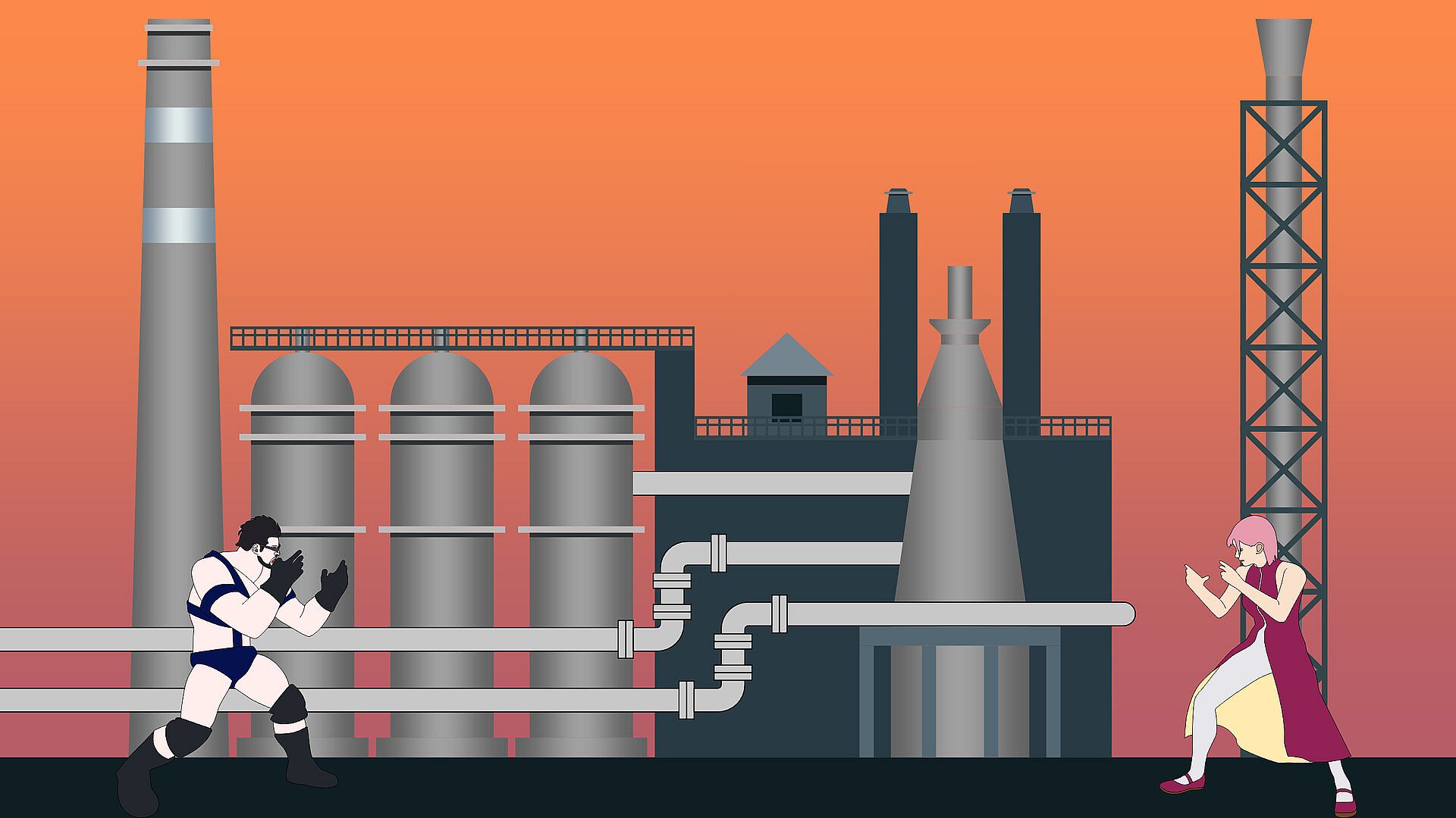 This game combines two genres: fighter and visual novel. A story alternates with fights where hand-to-hand combat with a few characters within an arena is simulated. Fighting for various characters against various opponents, discover how the confrontation with the bloodthirsty dictator will be over.