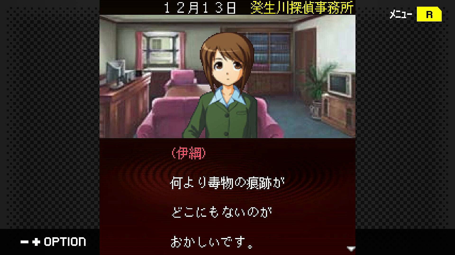 This is a mystery adventure game in which the player solves a series of difficult cases that occur in a fictional town called Marihama City in K Prefecture.