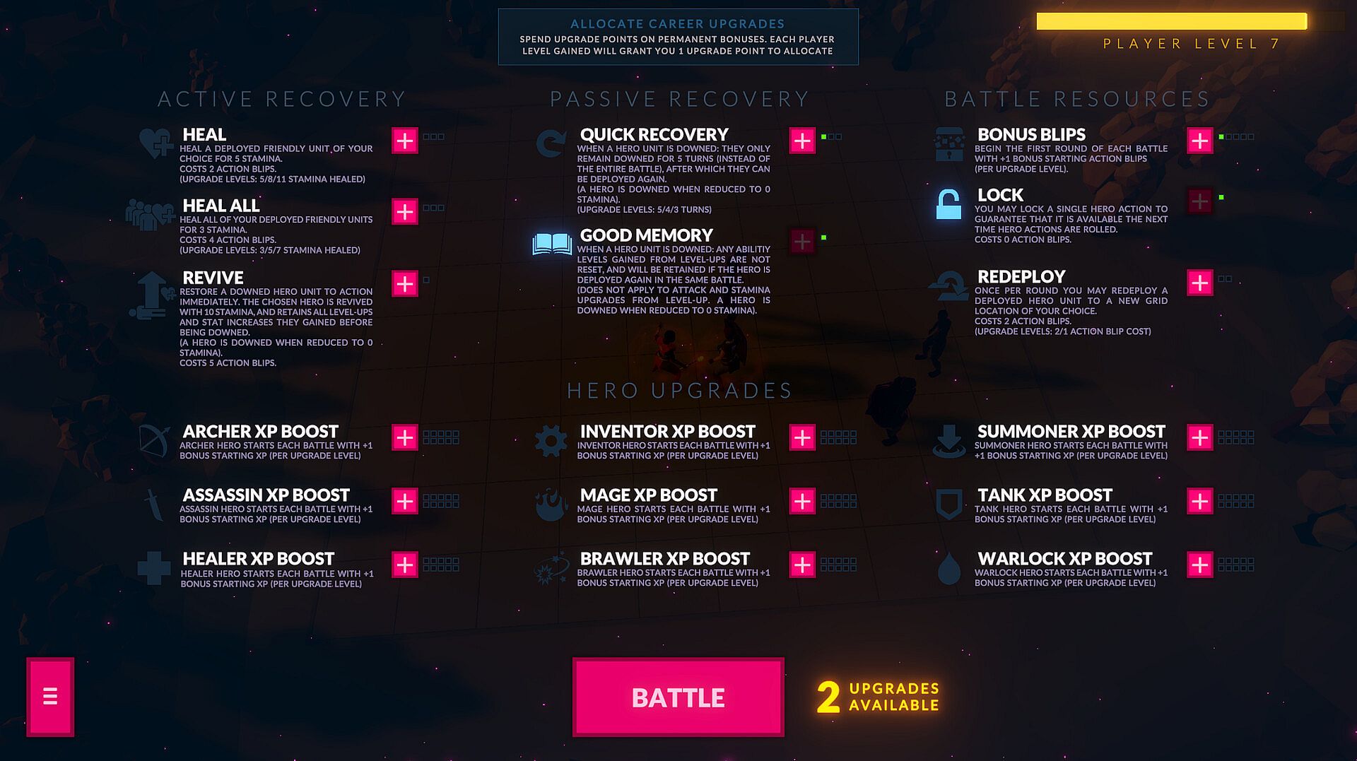 Gain career XP, and spend it on permanent upgrades to bolster your future runs.