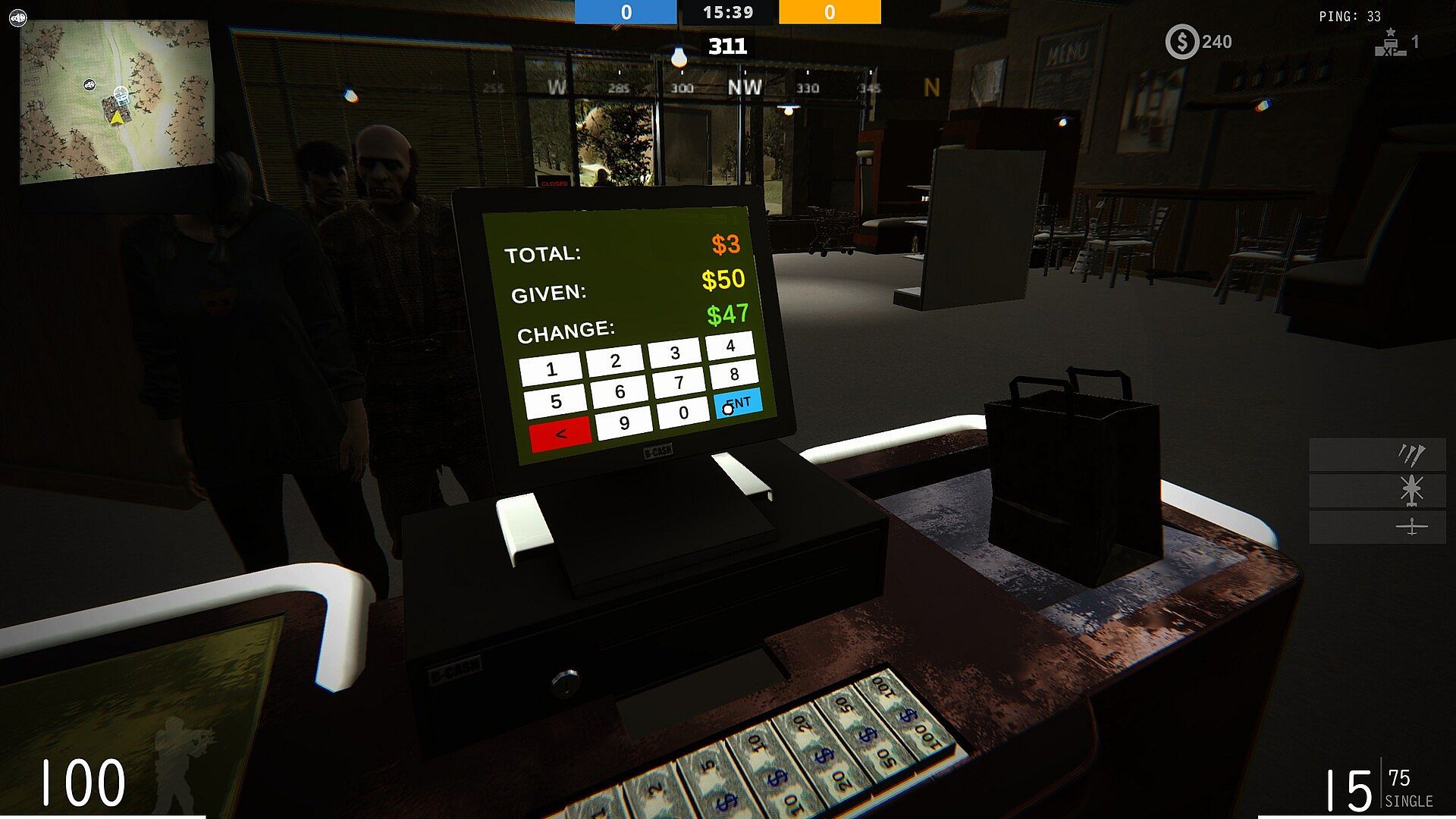 • Those who play as merchants first seek out black market middlemen and procure goods, registers, and shelves.