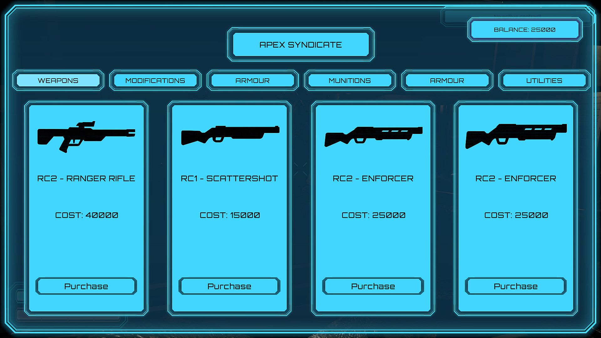 Crypts: Earn from contracts, spend on weapons, hardware upgrades, and your ship.