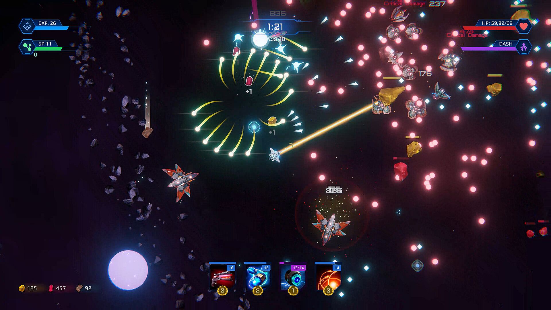 • Accumulate experience and research new types of weapons, abilities and ships;