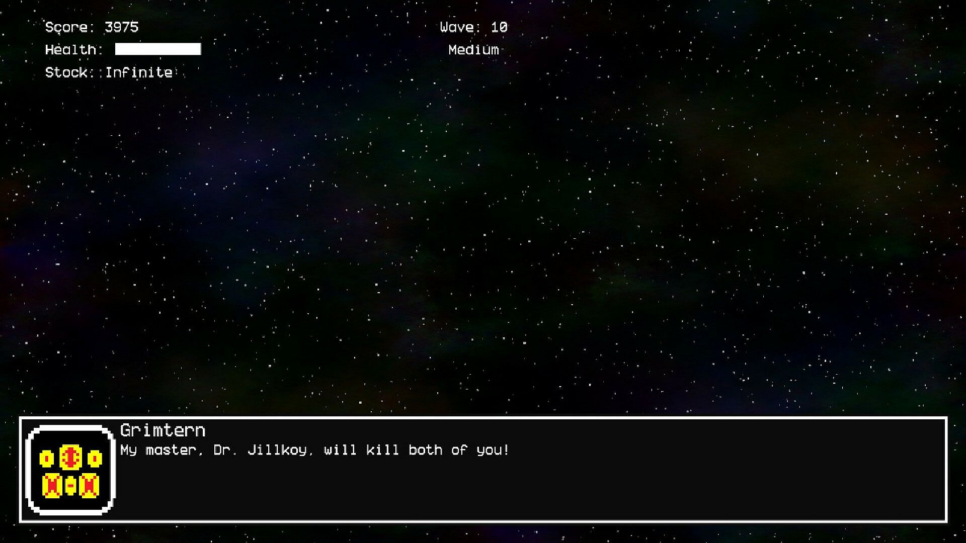 Galaxy Hassle is a story-rich fixed shooter that lets you play as Corelatine Rangers Ralph and Brad, and they need your help to apprehend Dr. Jillkoy, an evil scientist whose goal is to evolve all species to their "ultimate potential," whatever that means.