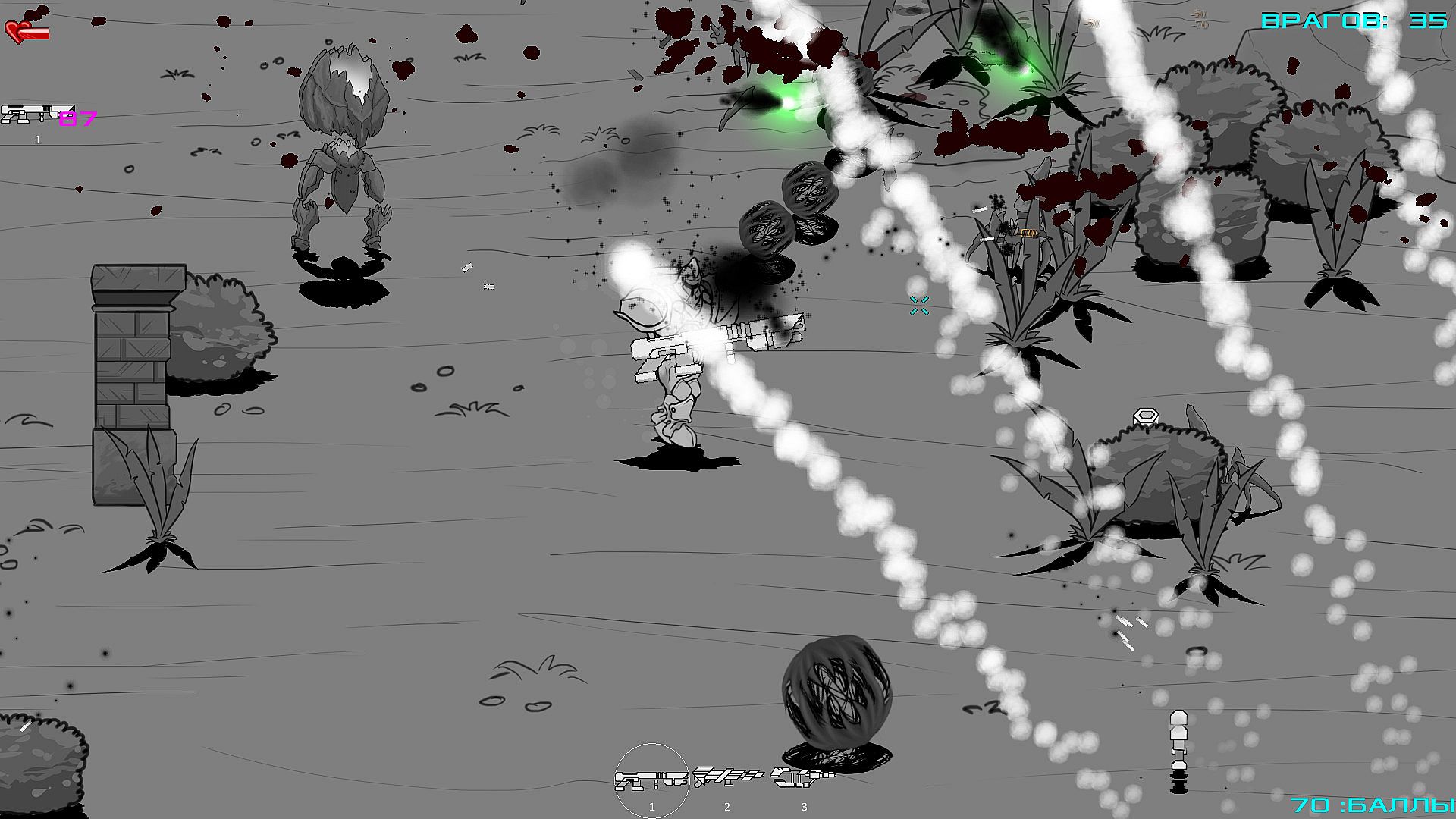 Use boxes with ammunition that appear every second wave to fill up an ammunition and health. But be careful, some opponents are not worth it to spend for them a precious ammunition. Do you have enough strength to withstand all the tests and reach the end in this difficult battle?
