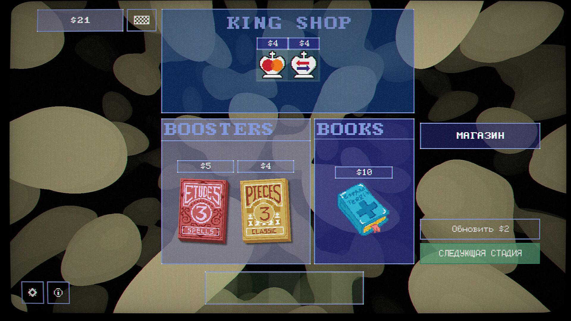 Combine unique chess combinations with unique kings, for get special abilities and effects. Be careful, every 3 round you will fight with endgame boss.