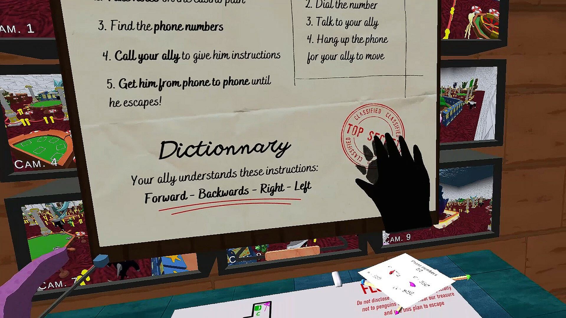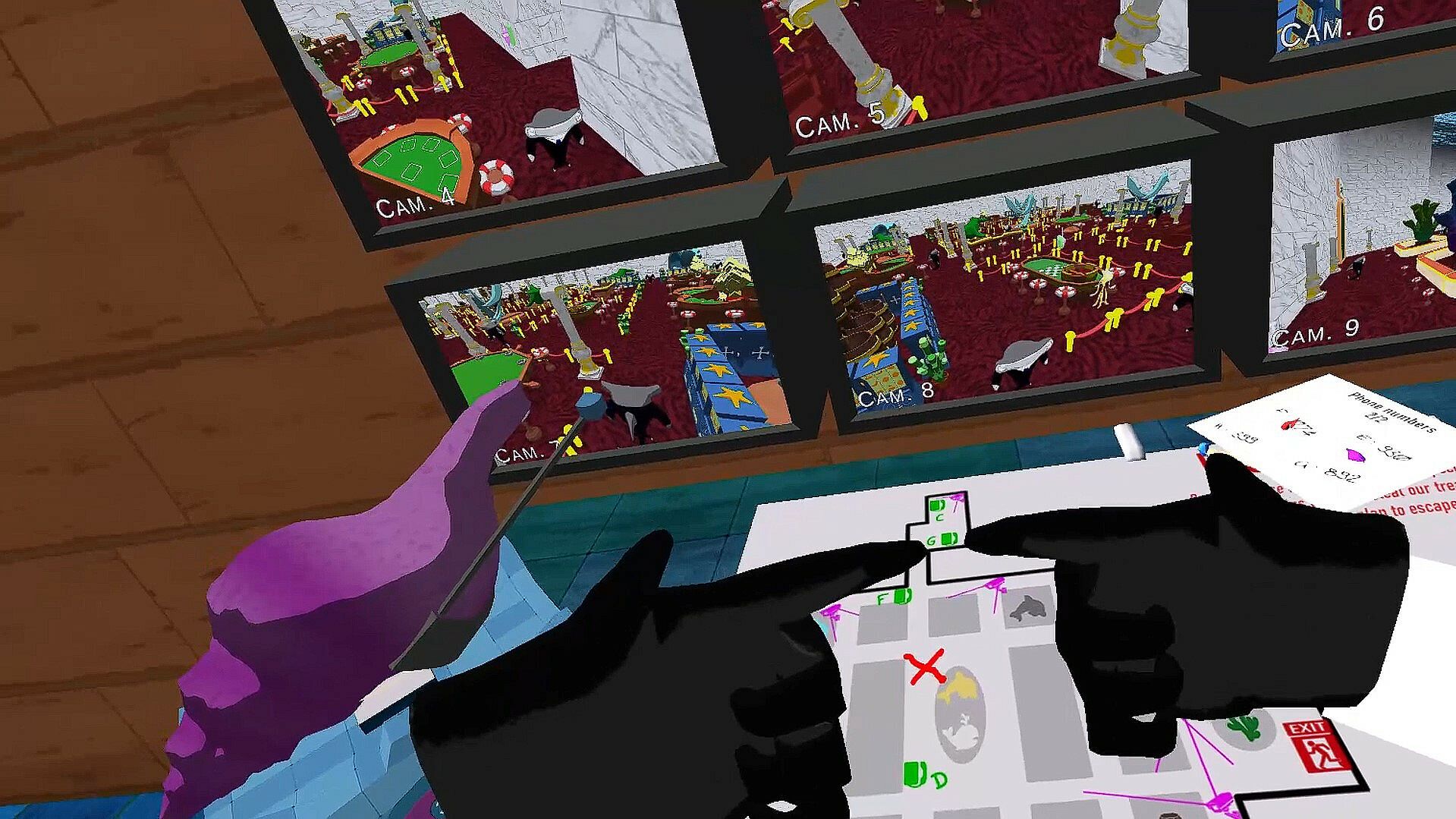 • spot the casino with the help of the cameras to plan a way out for your accomplice,