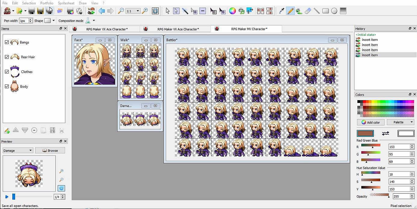 Game Character Hub allows you to easily convert your character assets for different RPG Maker engines.