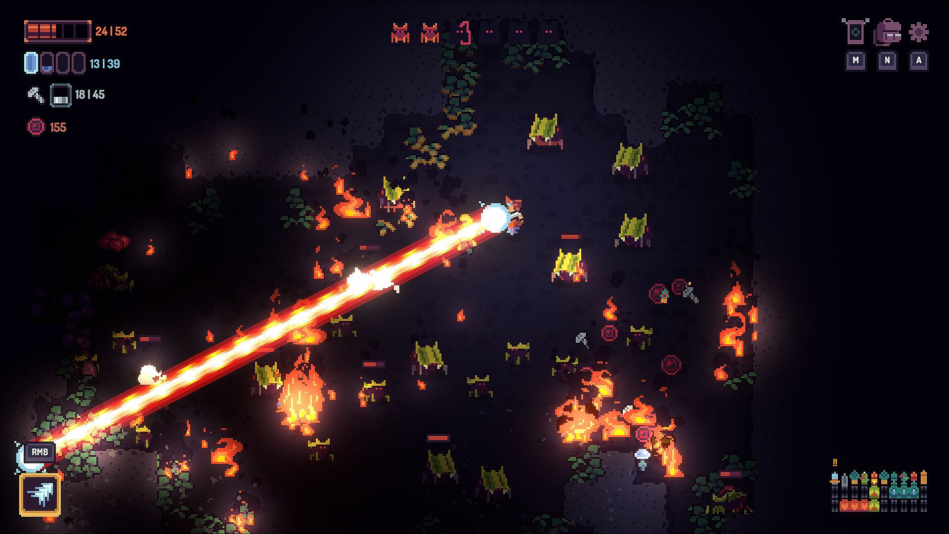 Collect leftover pieces of fallen bugs and use them to craft unique bullets and modules and then loop through them as you shoot.