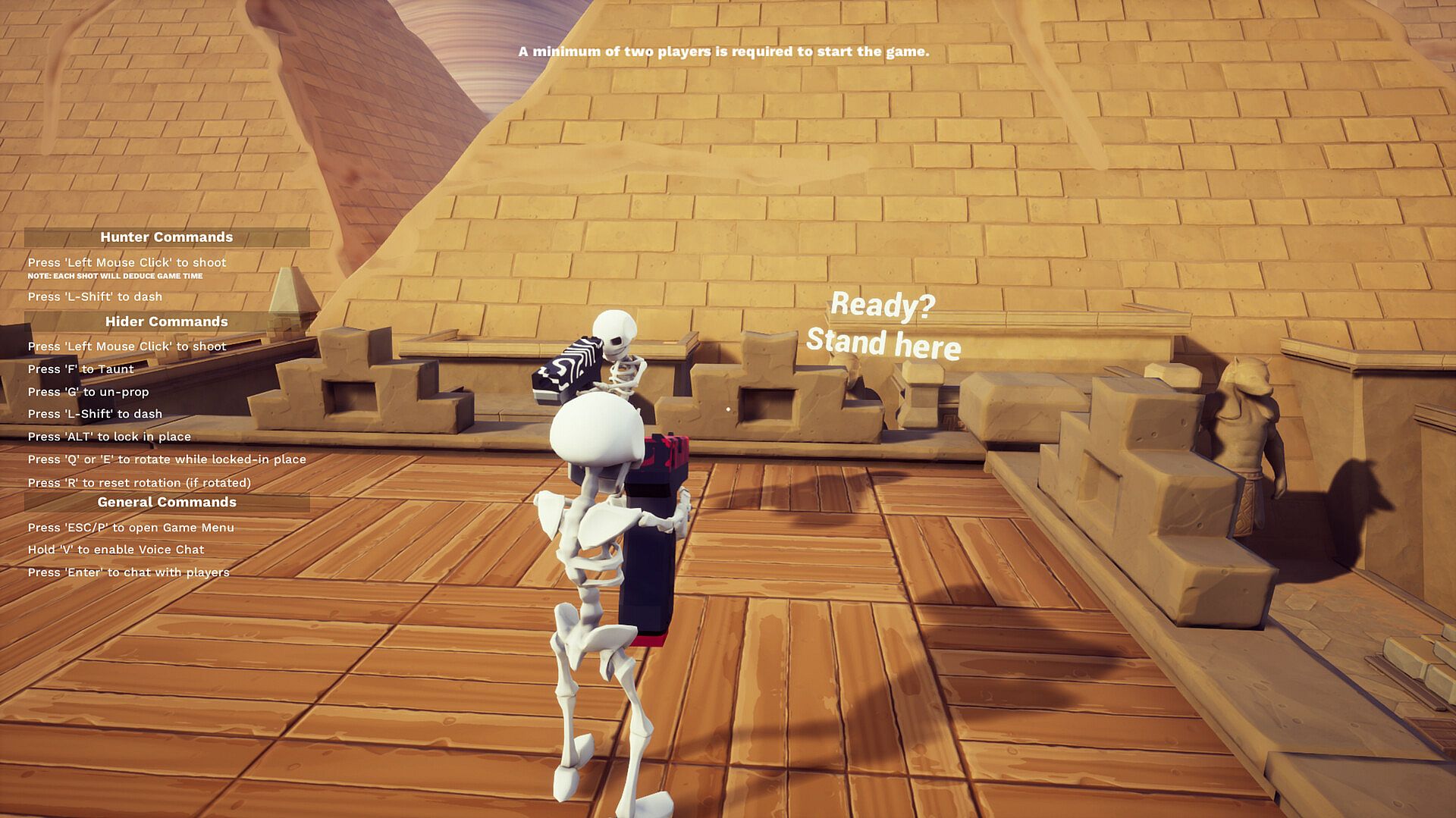 Gamebesh delivers an immersive and enjoyable Prop Hunt experience, requiring a minimum of two players, with the flexibility to accommodate up to eight participants. The game focuses on strategic maneuvers and quick reflexes, making each session thrilling and unpredictable.As each round concludes, the selection process randomly determines who takes on the roles of Hunters and Hiders, ensuring a fresh and unpredictable gaming experience each time. Hiders, equipped with the power to transform into over 200 different objects scattered throughout the game map, face the challenge of blending in seamlessly to evade the Hunters' keen eyes.