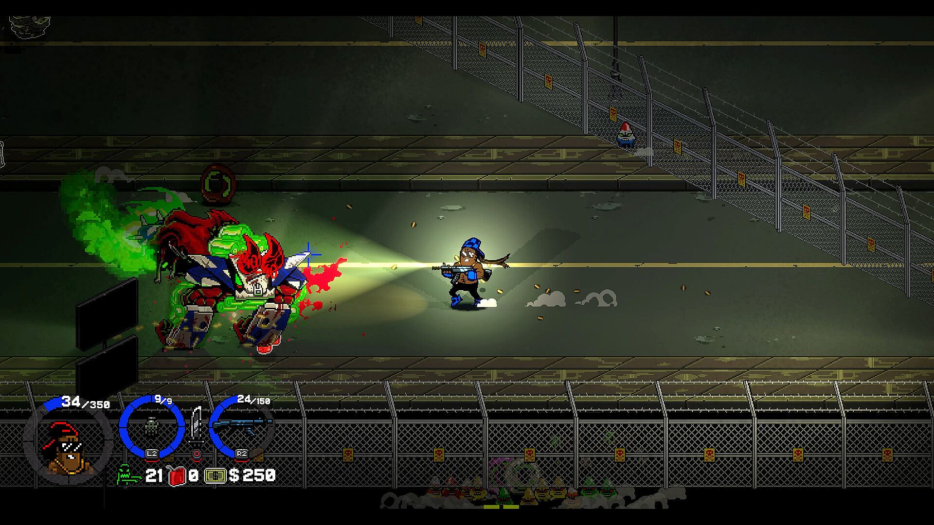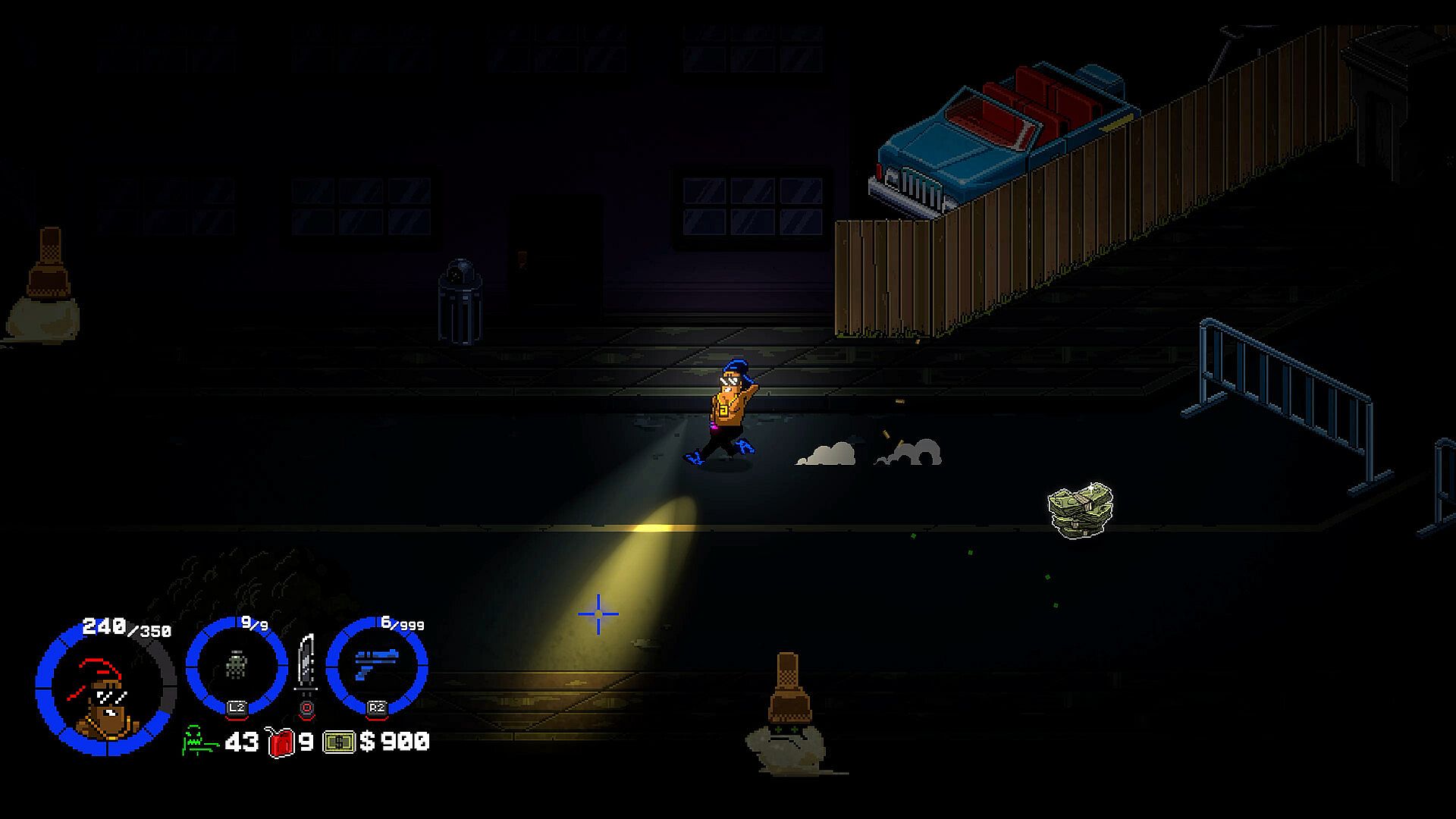 • Pick up health, cash, and ammo along the way.