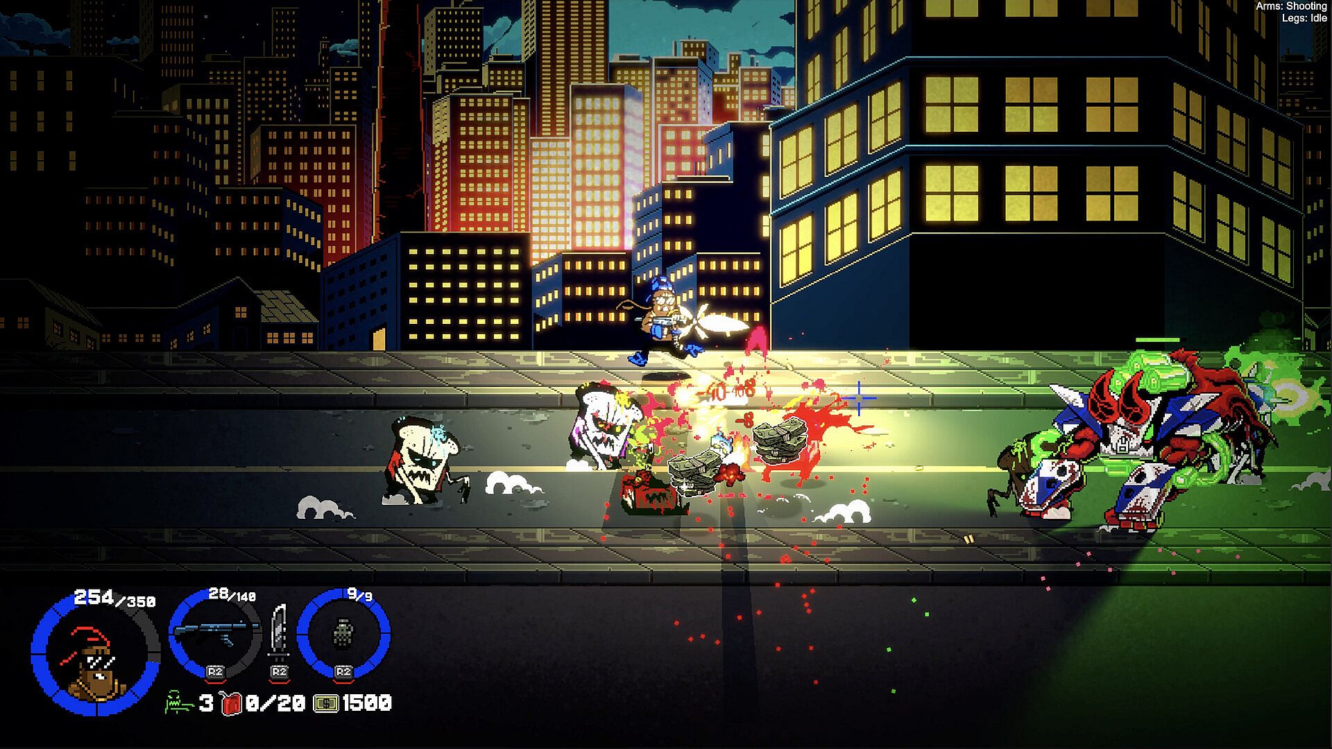 • Advance through side-scrolling levels, retro arcade-style, as you escape the city.