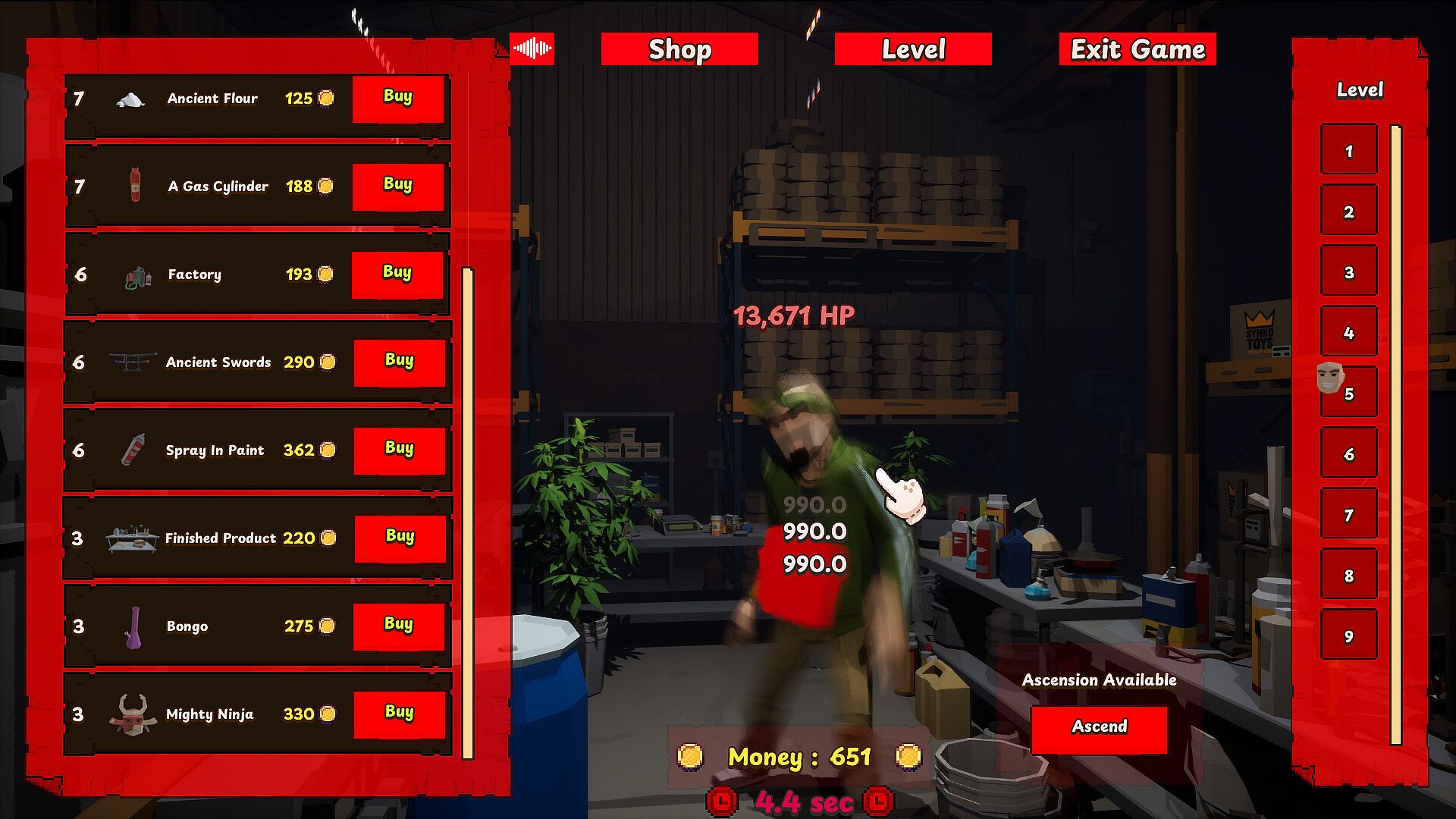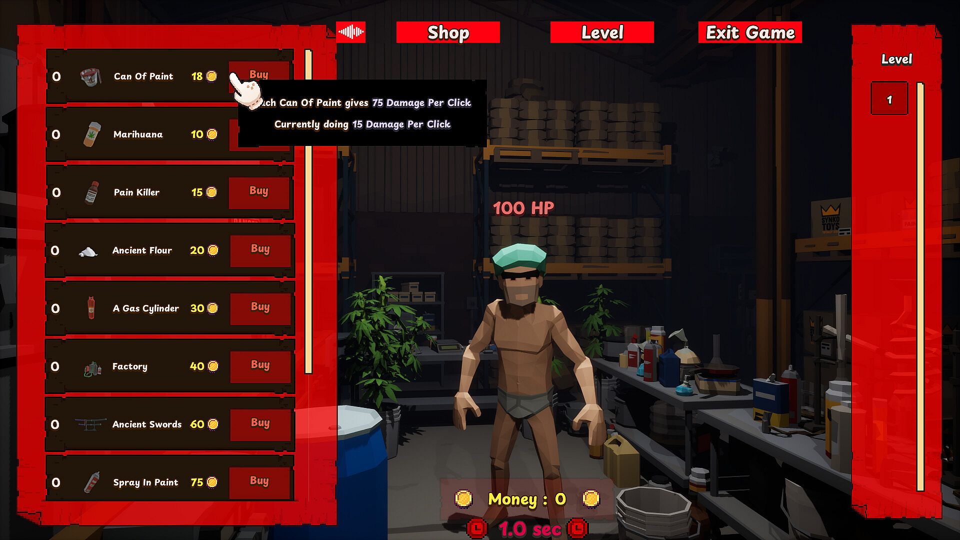 At the beginning you click People to stun them to get their gold. You spend the gold to buy new items and not only deal more damage. The more damage you deal, the more gold you gain. Your power will grow exponentially and you will become the best in the world!