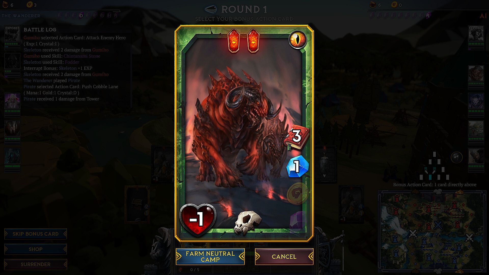 GANK brings a unique flavor to the 5v5 MOBA genre - you control all 5 heroes on the team in a tabletop boardgame format! Instead of point-and-click in real time, players take turns picking cards that represent the usual actions you take in a match; Farming neutral camps for Gold, attacking other Champions, finding treasures that spawn at intervals, pushing the actual lanes; It's all turn-based!