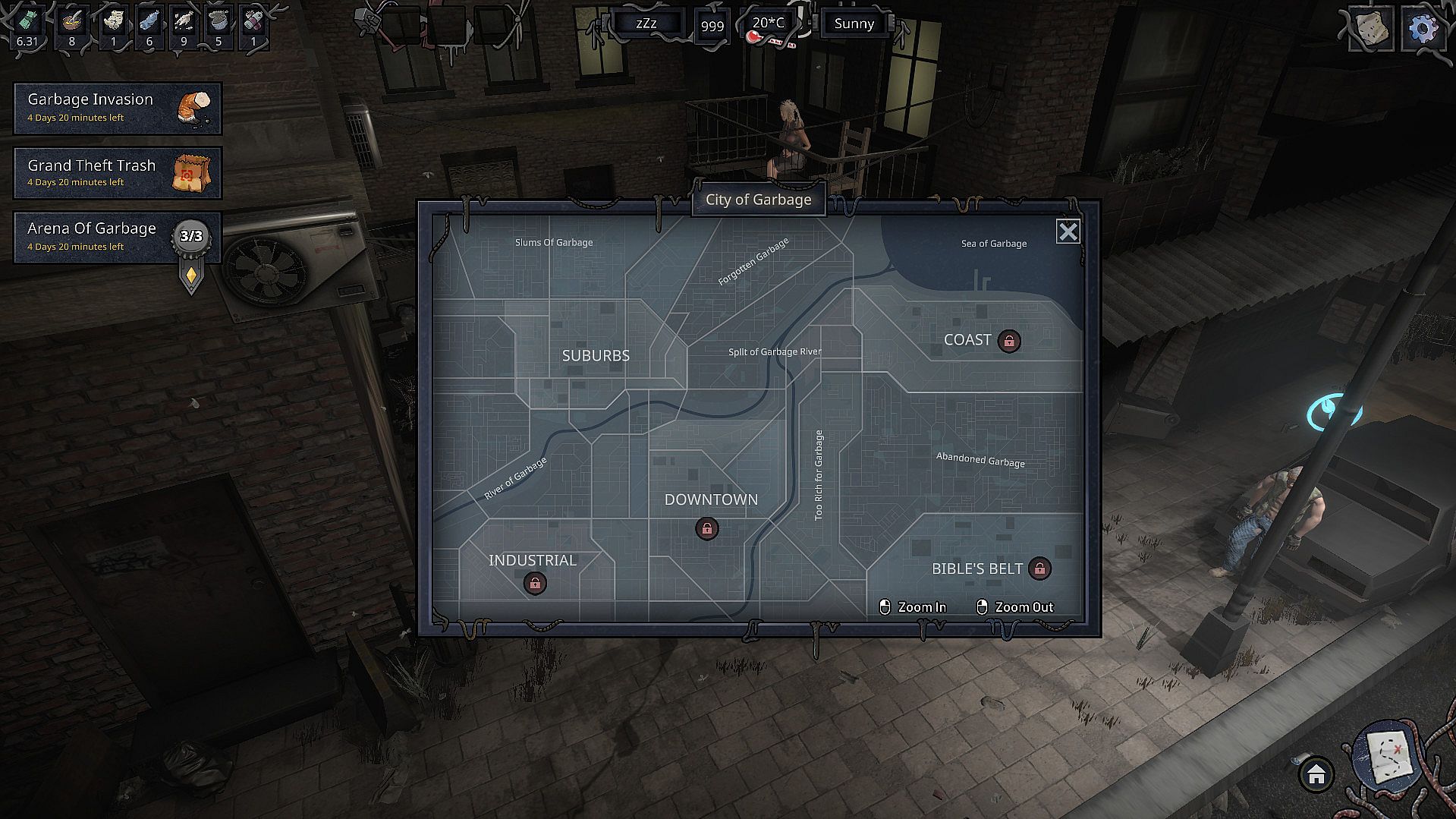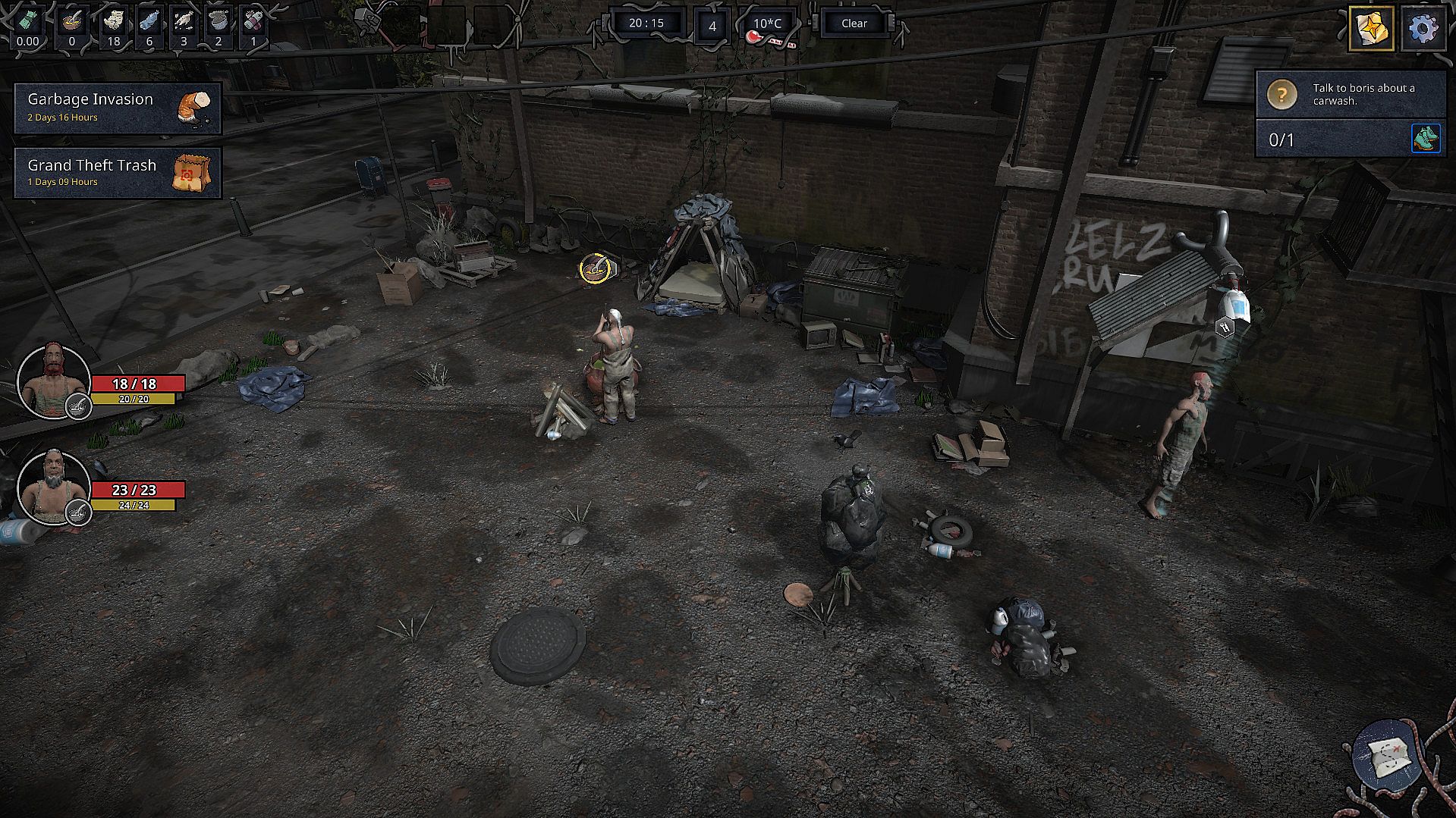 Garbage is a fighting simulator game with management and building elements. Experience the struggle which a homeless man goes through in a humorous yet non-offensive manner. Primitive elements of contemporary life that we take for granted, such as staying warm, well-nourished, and hygienic, will become an issue.