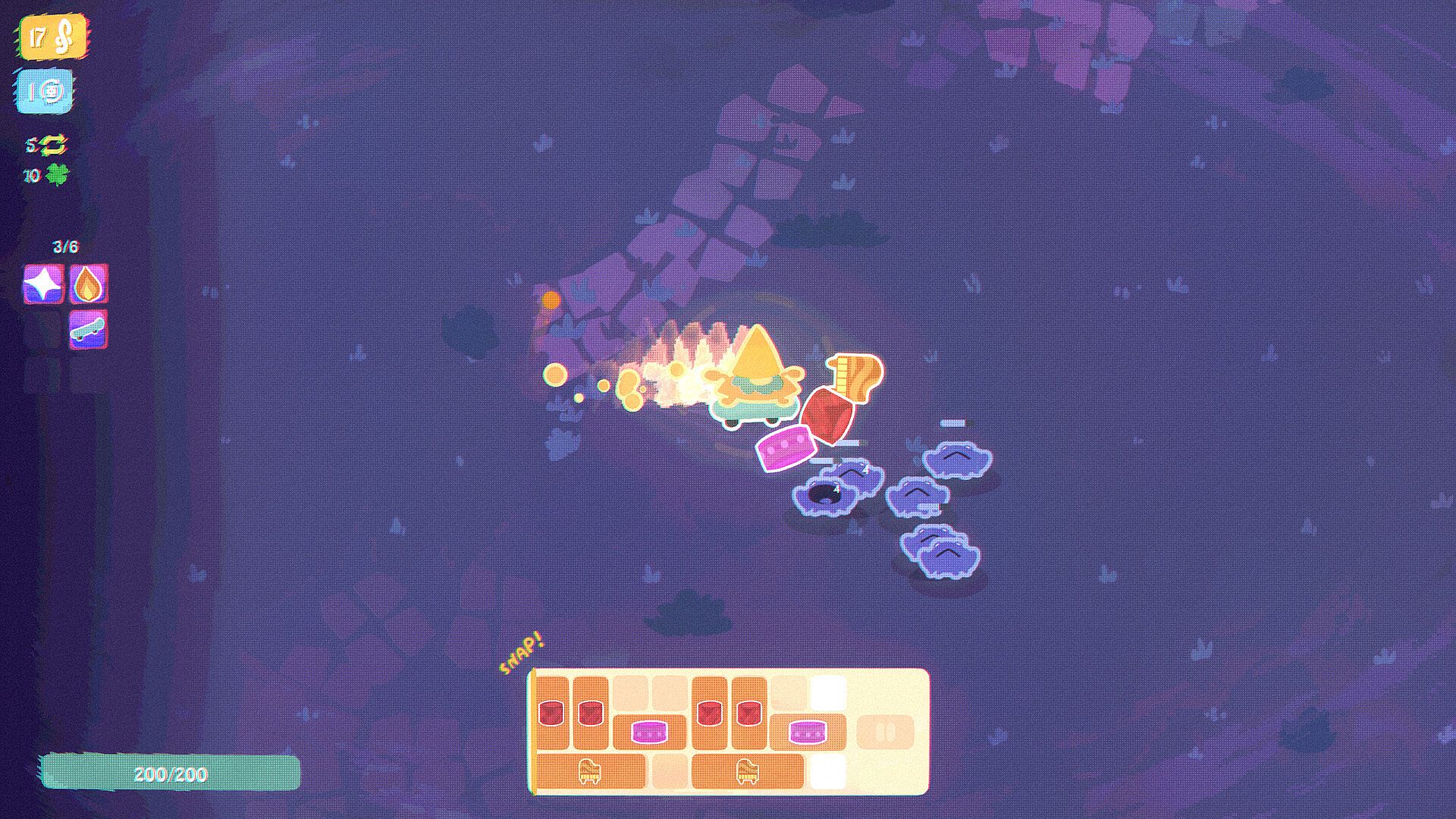 Clear waves of enemies in this gnomesque music-based roguelike. Purchase instrument samples from the shop and strategically arrange them on a track. Build a deadly musical loop through synergies between your instruments, trinkets and character. Then hit play and vibe to your creation, shredding your foes as each note triggers its effect on the beat.
