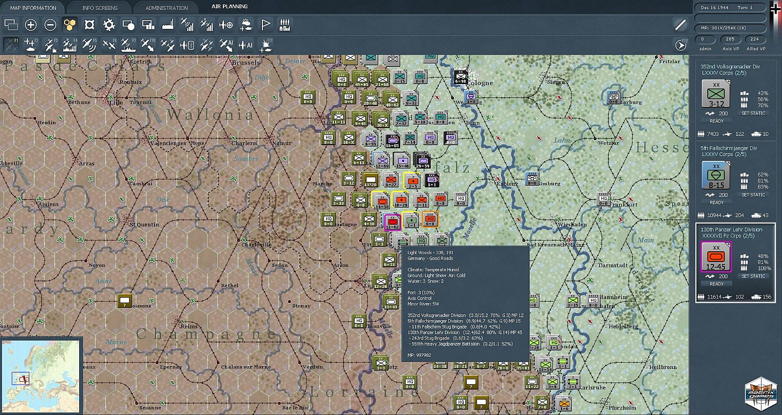 - The map is built as a part of an enormous War in Europe map which is 378x355 hexes, a building block to a future "mega unprecedented scale" game (134k hexes)