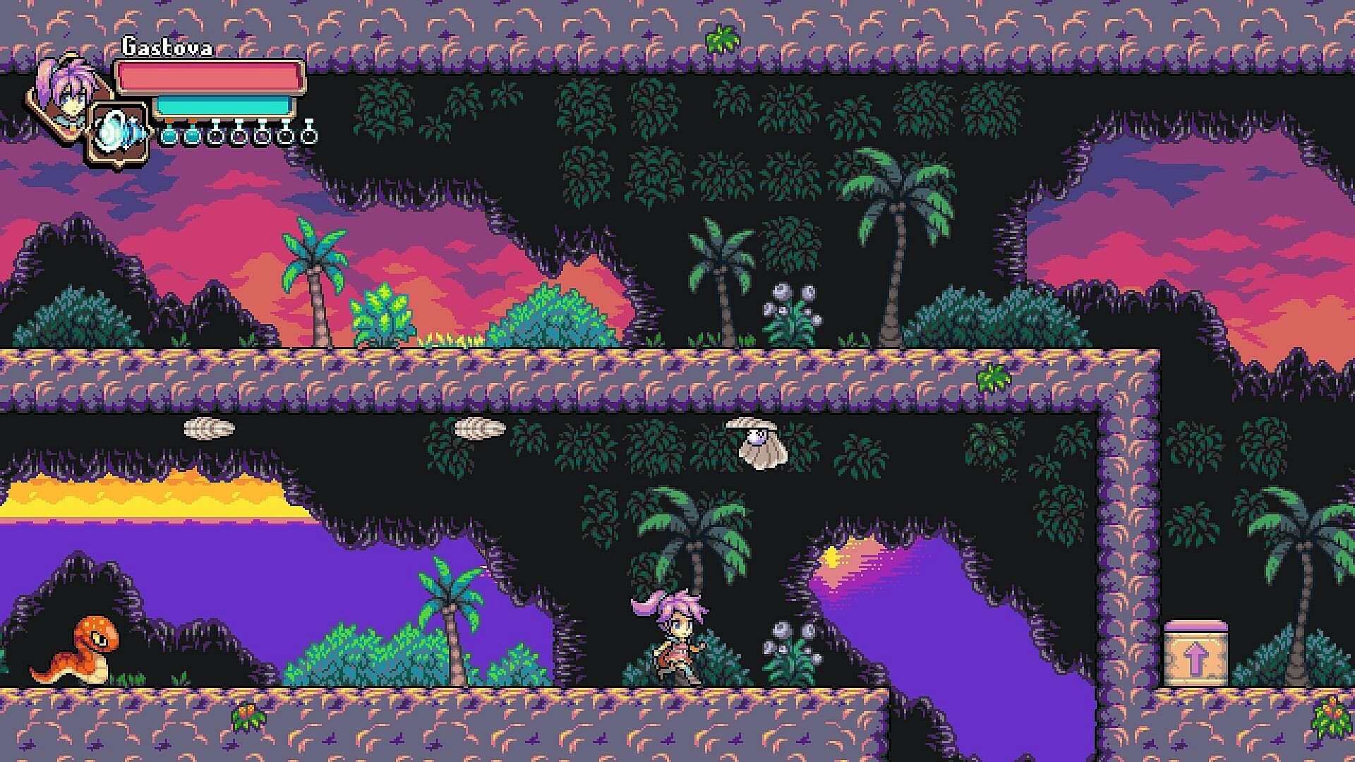 Gastova embraces the most fundamental principle of the platforming genre. You jump, you dodge, and you shoot. The core gameplay revolves around adventuring through 8 distinct landscapes, and overcoming the obstacles within them. Every area will be divided into two parts, with a challenging boss waiting for you at the end of each area.