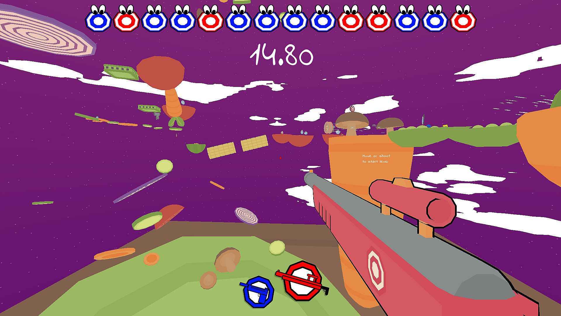 • Blaze across 30 levels - Set across 4, vibrant, whacky worlds, Gawble Gunrange is constantly throwing new environmental challenges and set pieces in your path!