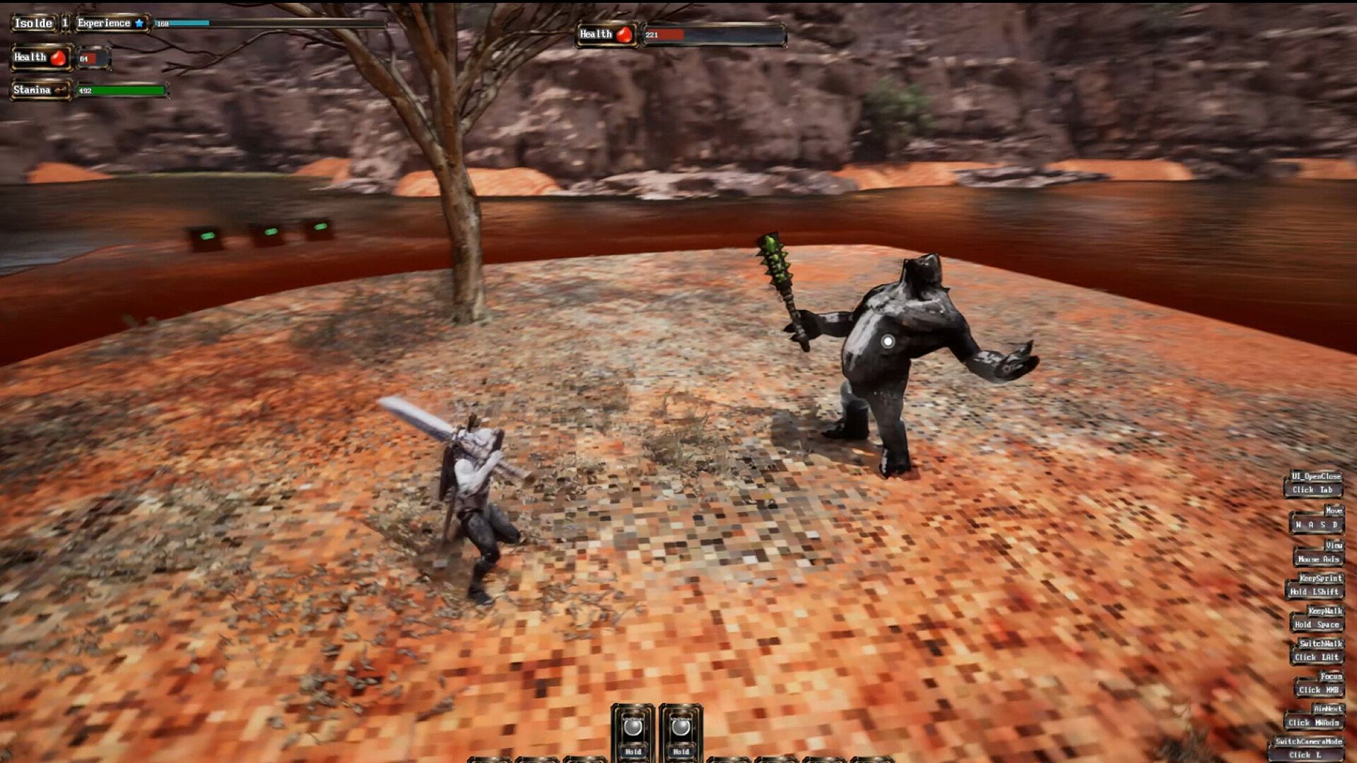 • 1. A complete combat system, where players can use a variety of different weapons for combat (swords, shields, large swords, bows, etc.).