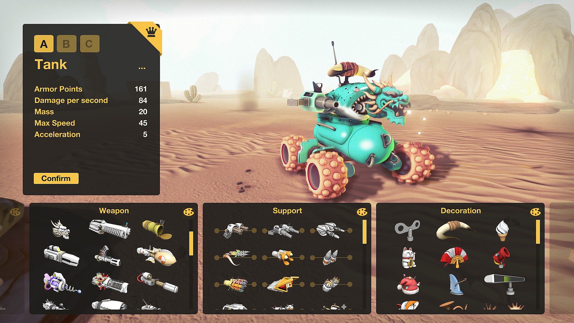 - Master the art of propulsion – Will you go for the rumbling caterpillar tracks, swoop across the arena using wind turbines or let loose the smell of burning rubber with go-kart tires?