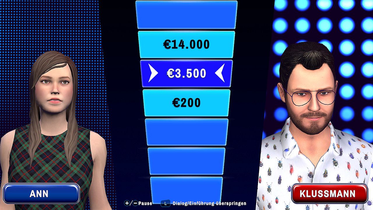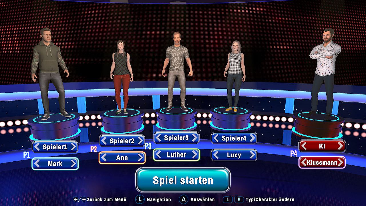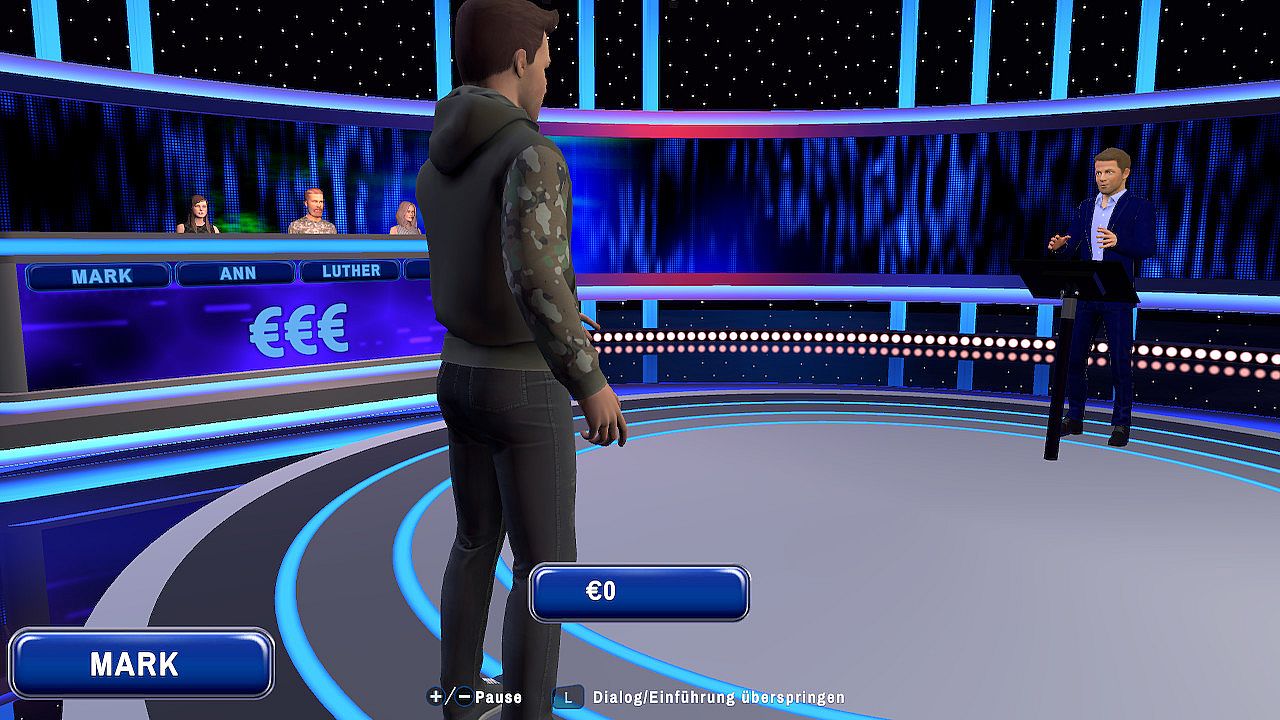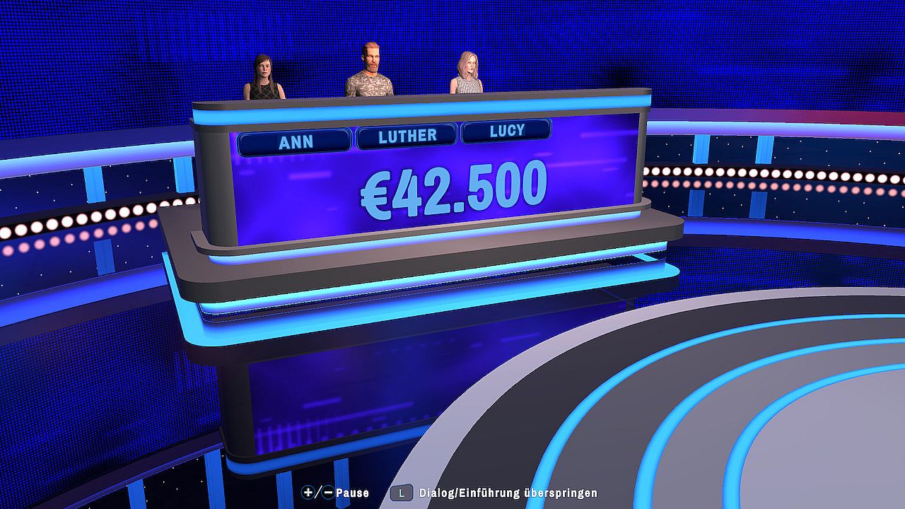 Chaser or chased - who will ultimately emerge victorious from the studio? It's up to you! Experience the show up close. Finally, you can compete as a contestant against one of the chasers or take on the role of the chaser yourself and show the contestants that you have what it takes to be a real chaser. Play with up to three friends and decide completely freely how you want to split up. All four of you want to compete against the chaser just like in the real show and beat Sebastian Klussmann, Sebastian Jacoby or Klaus Otto Nagorsnik? No problem! You want to prove to your friends that you are the real chaser? Then take their place and play against them. For this purpose, we have prepared a special chaser that you can take over to make the candidates really sweat. THE CHASER BEGINS!