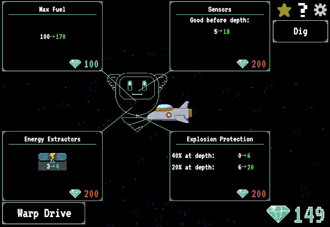 • Upgrade Dig Bot between days to improve energy, sensors and armor and prepare to dig deeper each day.