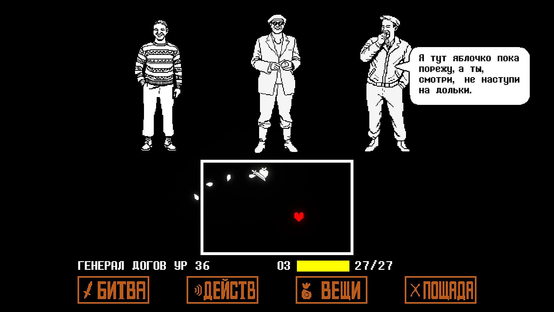 Этот проект создан с большой любовью к оригинальной игре Undertale и с искренней радостью от феномена «Генеральских котлов», которого мы все могли наблюдать на ютубе (и не только).