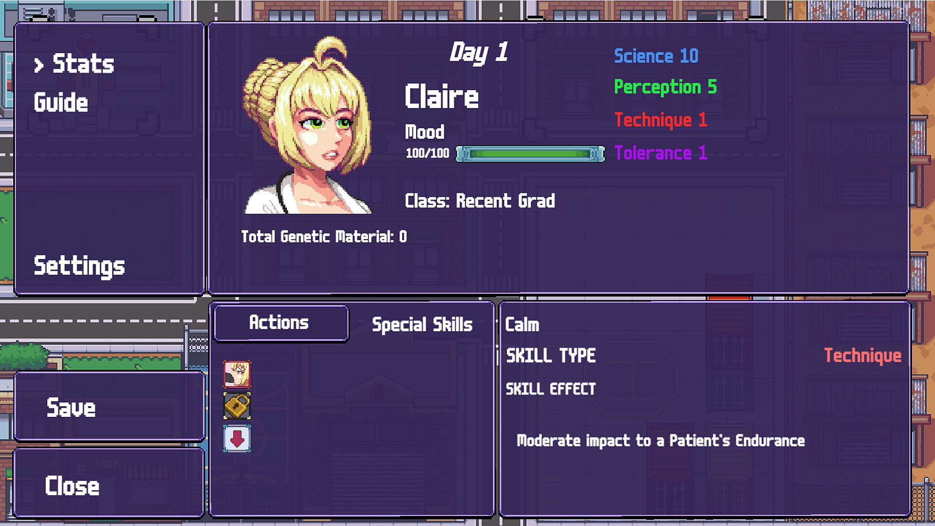You play as Claire, a newly appointed Mutations Researcher who relocates to the town of Glory Town after graduating from Glory Academy. When the clinic’s automated sample extractor breaks down, Claire is forced to rely on more personal — and morally complex — methods to continue her research and meet the strict quotas imposed by the WWHA.