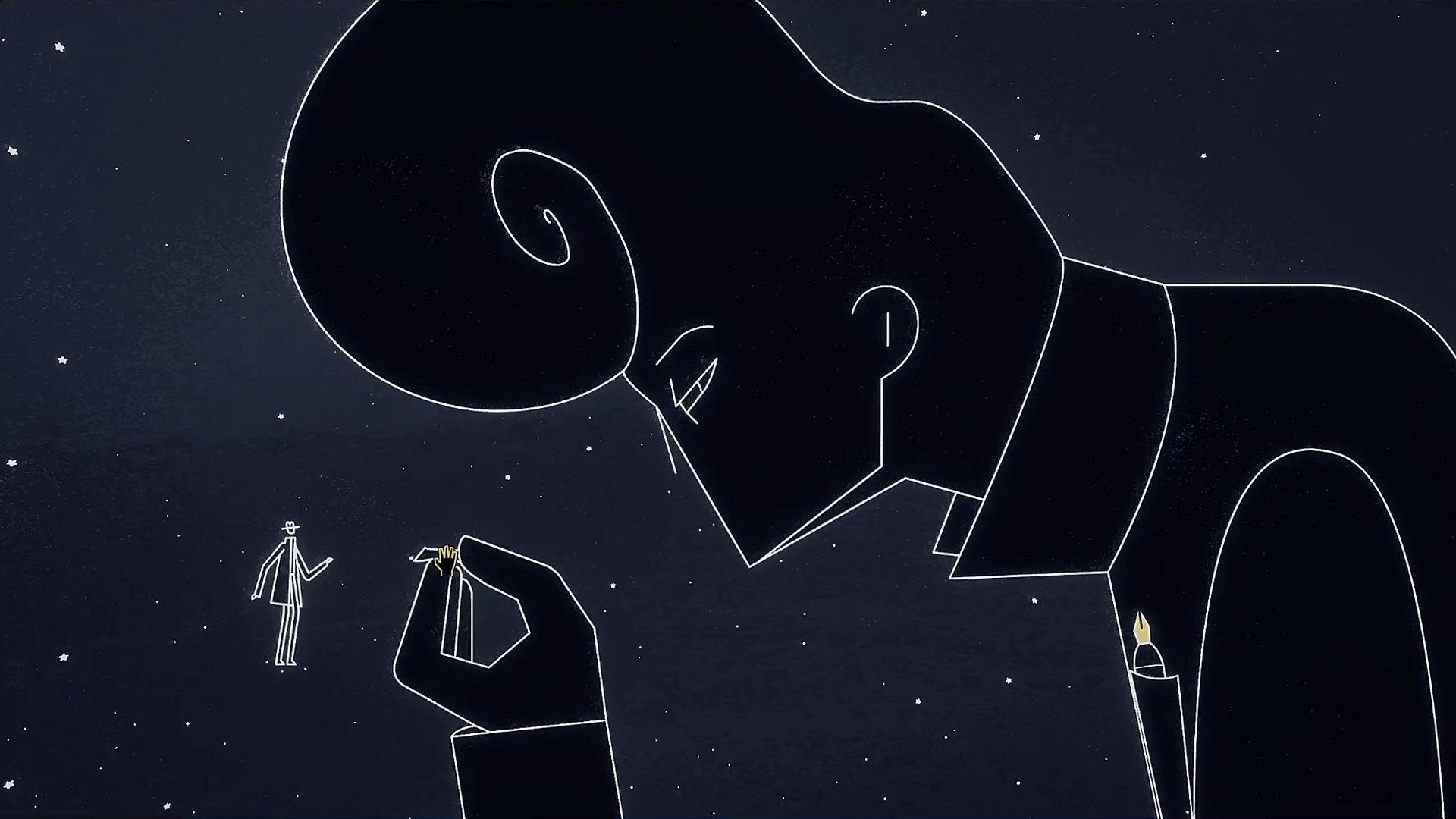 You play as No Man, a watch peddler caught in a love triangle with other cosmic beings, Miss Mass and Golden Boy. When your affair turns into a bitter confrontation, you will witness a gunshot fired by a jealous god—otherwise known as The Big Bang. Jump into the expanding universe and search for a way to prevent or destroy creation and save your love.