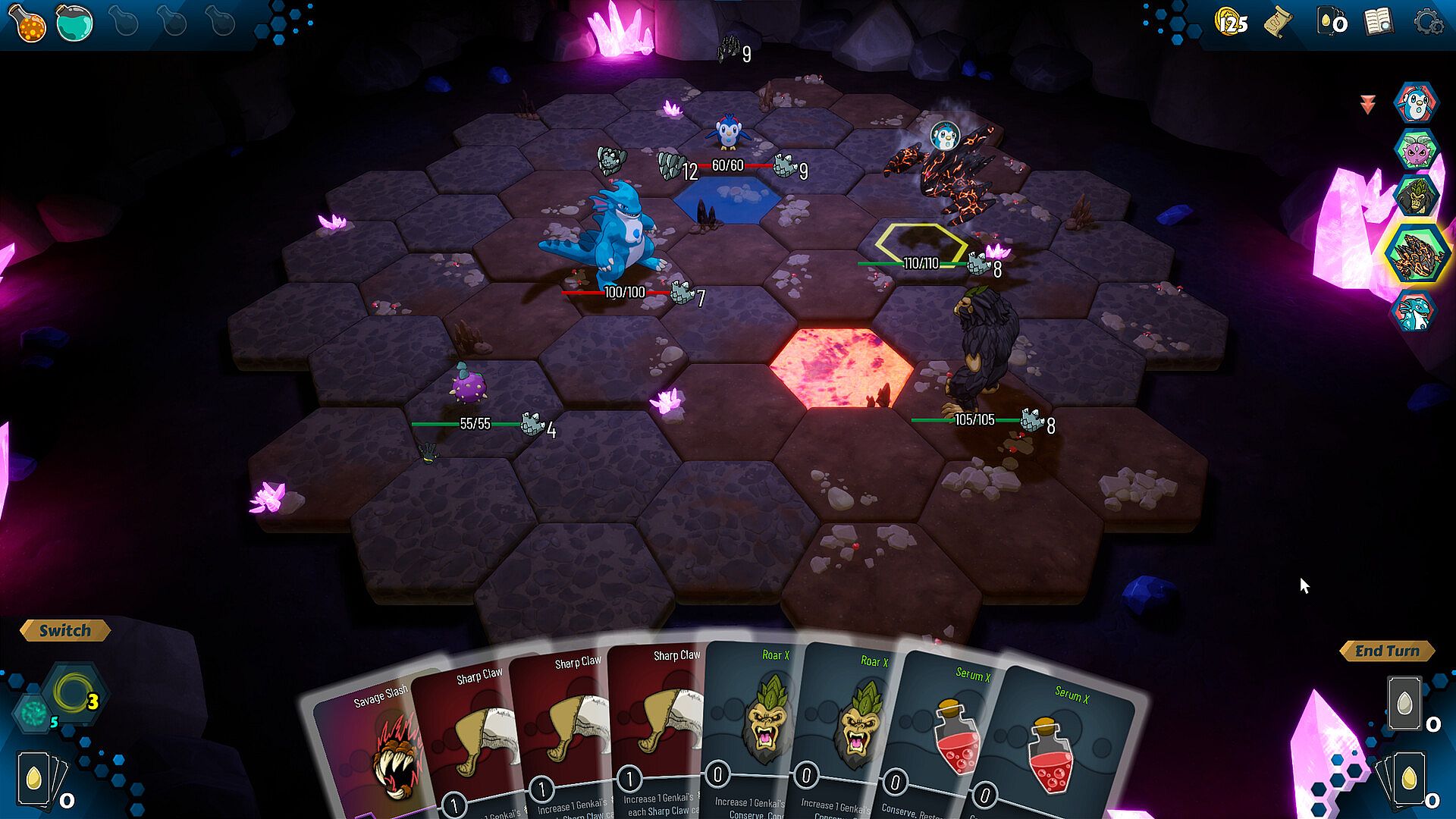 Genkai evolve during combat, gain experience to increase their power and evolve them into their final form.
