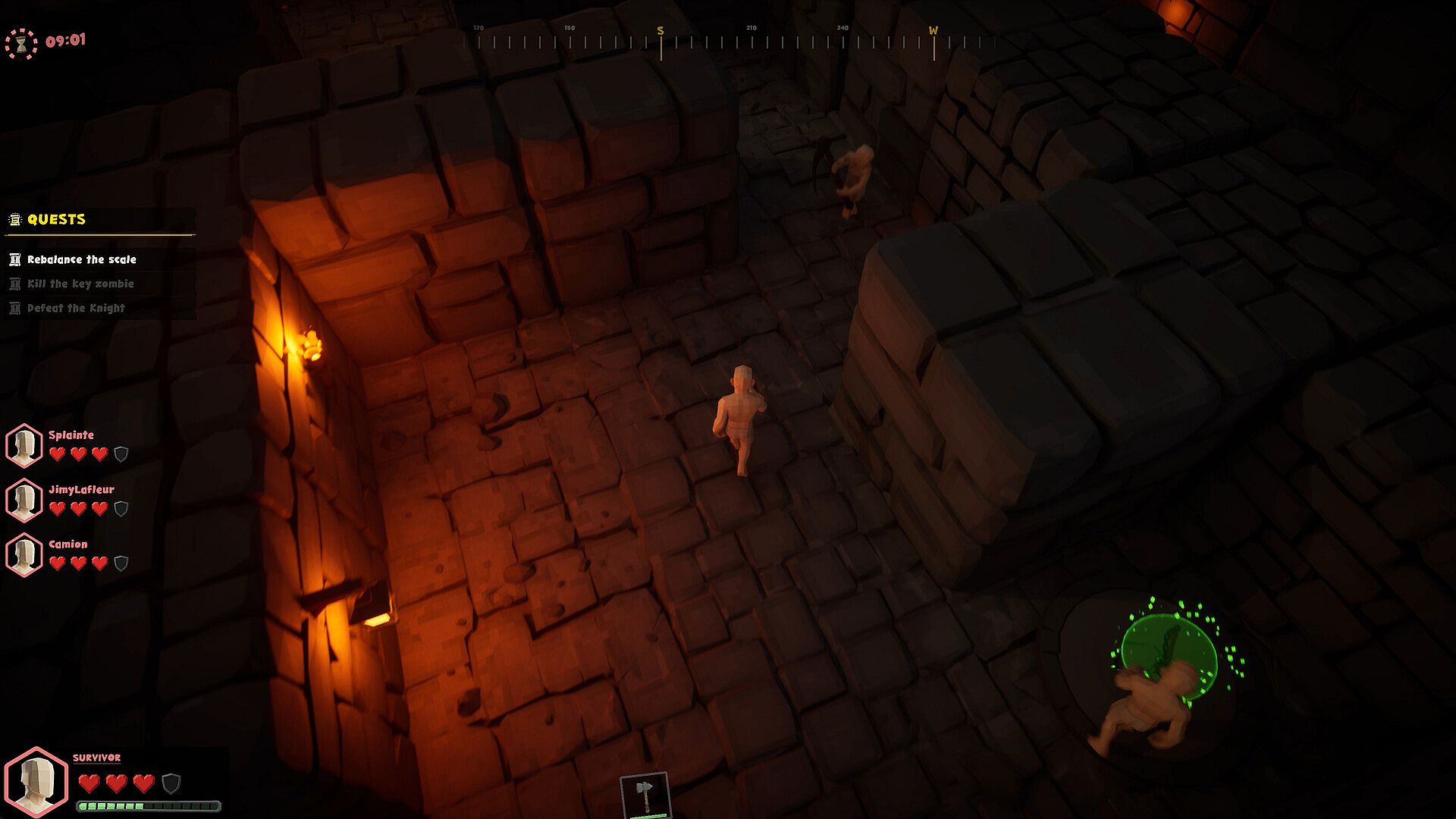 • Loot & Combat: Scavenge the halls for gear and face the threats.