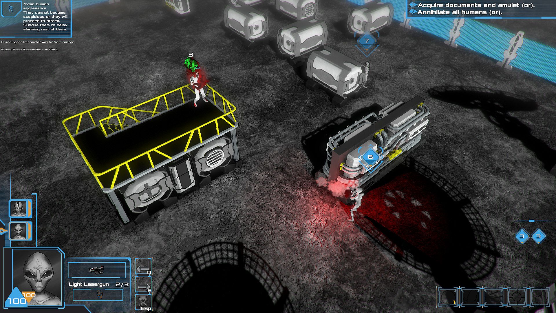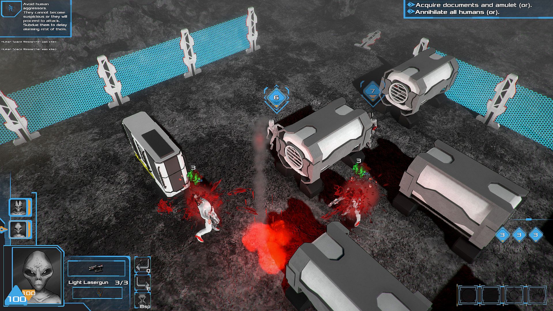 Use alien skills to get rid of enemies faster. Use grenades, poison and other unusual items, or shoot them with your laser gun.