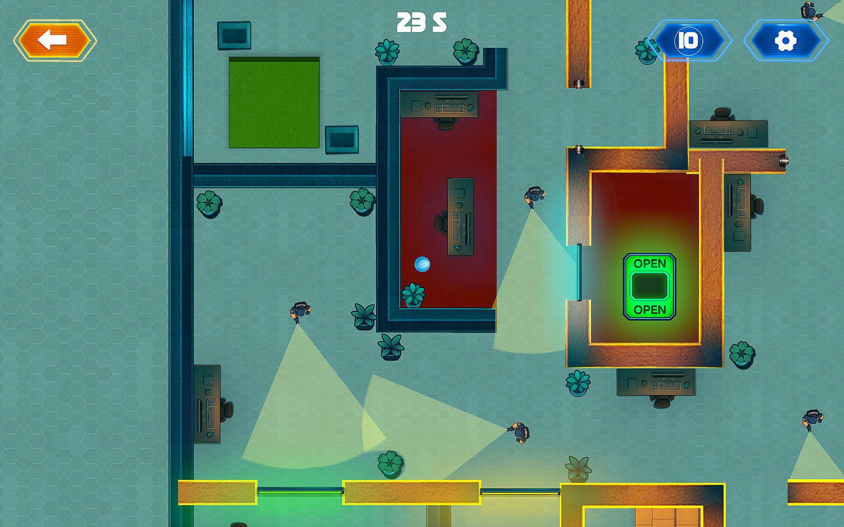 Gameplay blends precision golf mechanics, stealth, and puzzle-solving. Line up clever shots to ricochet around desks, walls, and obstacles, and bend the rules of physics just enough to survive. Time your movement carefully, avoid the watchful eyes of security guards, and slip through restricted areas without being detected. Each level is a compact, handcrafted challenge where every bounce matters.