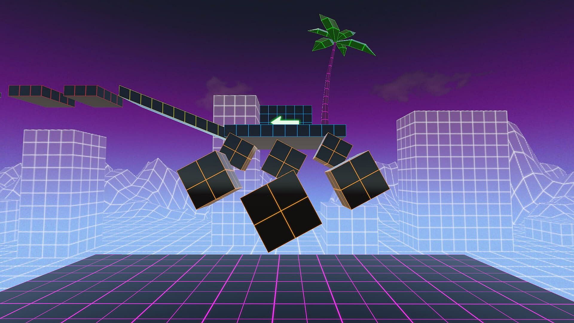 A fast-paced first-person parkour challenge focused on precision movement, mid-air control, timing, and speedrunning mastery. Set in a retro-futuristic synthwave environment with glowing platforms, surreal structures, and neon colors, every section demands focus and control. Begin from the starting point and push forward through a continuous vertical course rising nearly 300 meters, filled with moving platforms, rotating obstacles, and tightly spaced jumps. Falling or hitting certain deadly objects will send you back to the last checkpoint, keeping every section tense and skill-based. Optional checkpoint navigation allows players to jump to previous or next checkpoints, making it easier to revisit sections or skip particularly difficult parts.