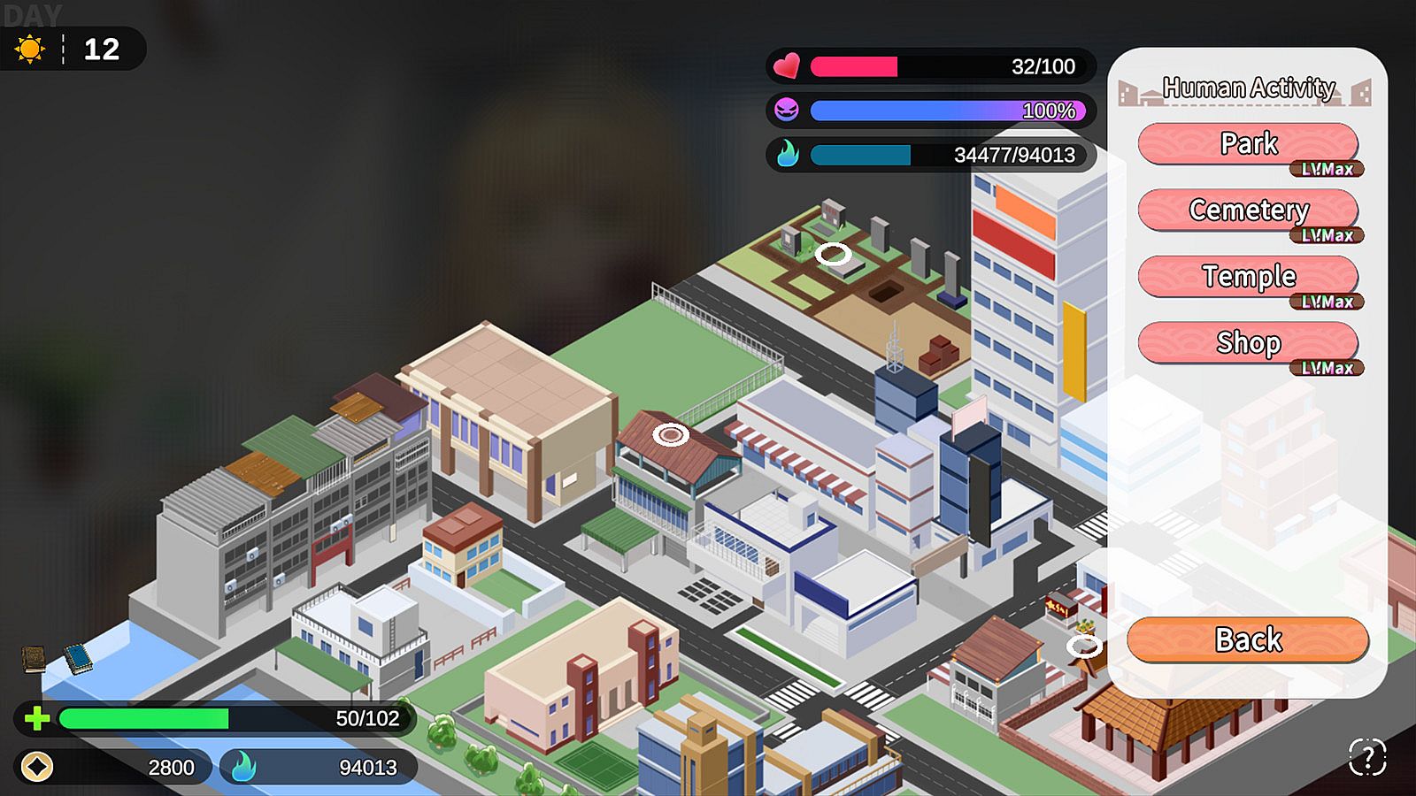 Every day, the actions you take, such as divination and purification, will affect Dai'er and Yuan's resentment levels and affection. While decreased resentment leads to unlocking more scenes, changes in affection can alter your ending scenario. Don't forget to watch your stamina! Players can also perform work to earn money to purchase special items that help move the story along.