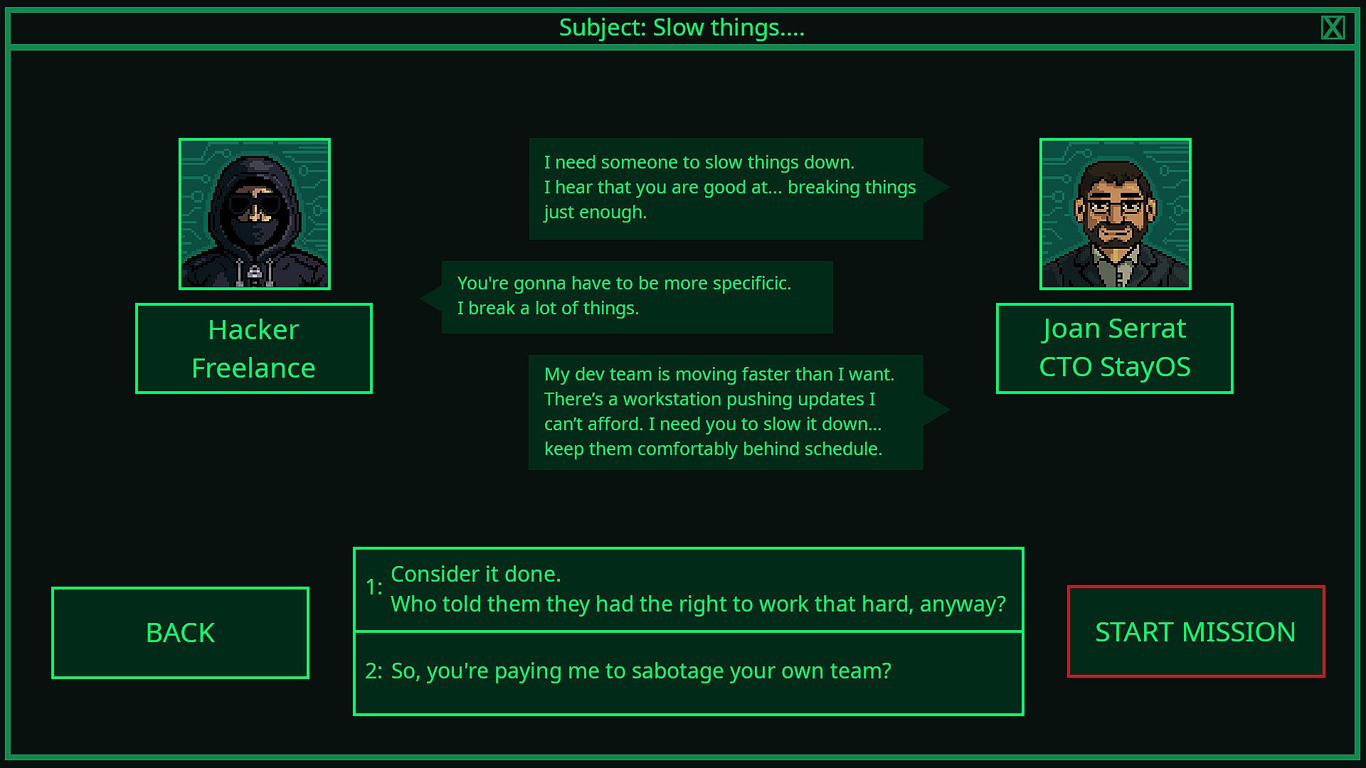 Accept contracts, gather intel, and negotiate with clients through your secure interface. The world’s most dangerous jobs, all managed remotely. Build your reputation in the shadows and uncover the hidden agendas behind every contract.