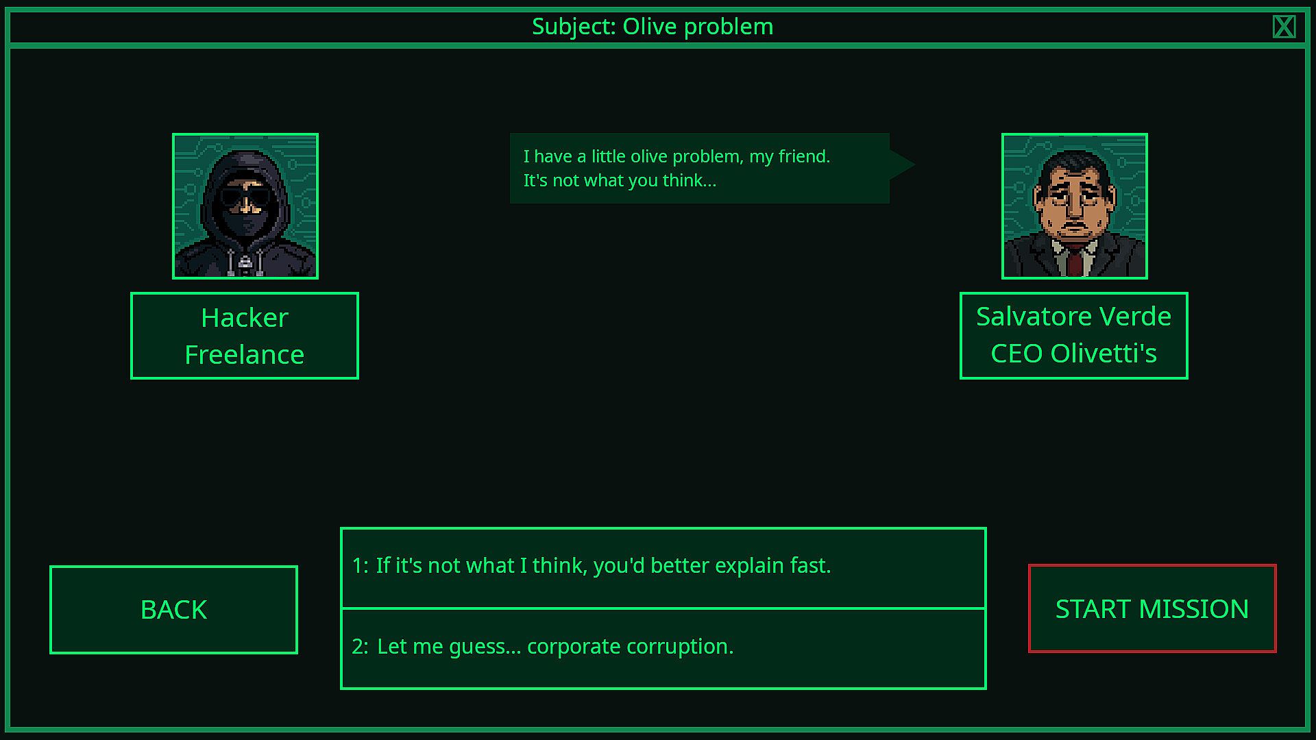 You play as a freelance hacker infiltrating high-security corporate facilities, using cunning, precision, and a versatile drone to outsmart advanced surveillance. Â Observe, plan, and execute your infiltrations through a network of interconnected systems, where creativity is your greatest weapon.