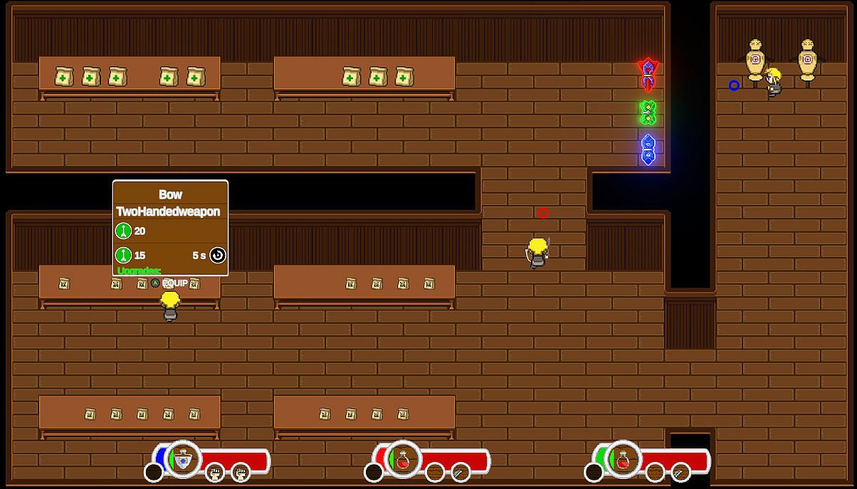 Most Roguelikes either end or give you a break if you die. This game won't! Players can still support their friends after they have died.