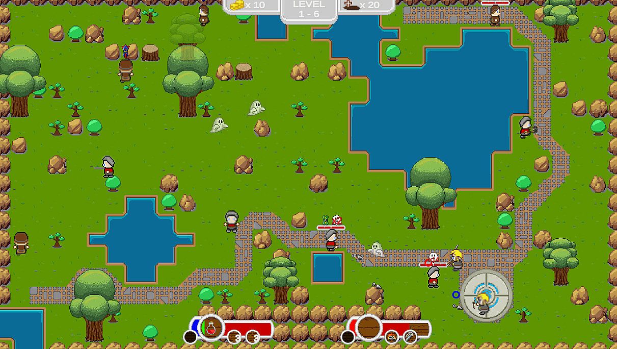 Collect gold from fallen enemies and deliver their ghosts to the next shop to get new weapons, potions and upgrades.