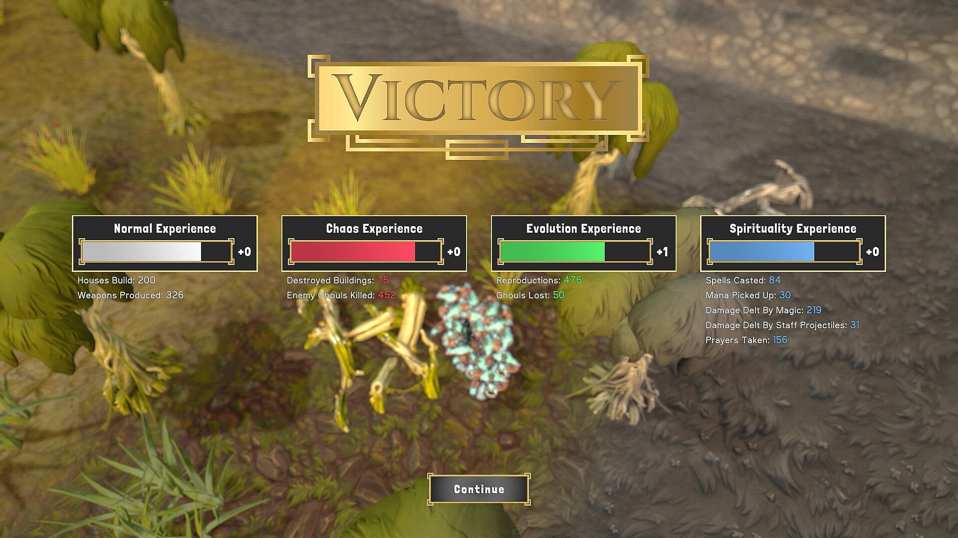 As a deity, your mission is to grow and lead your ghoul civilization while managing essential resources like food and mana. Your ghouls have their own behaviors but can be guided to gather resources, build structures, and engage enemies. Food allows them to reproduce and pray, generating mana for casting powerful spells.