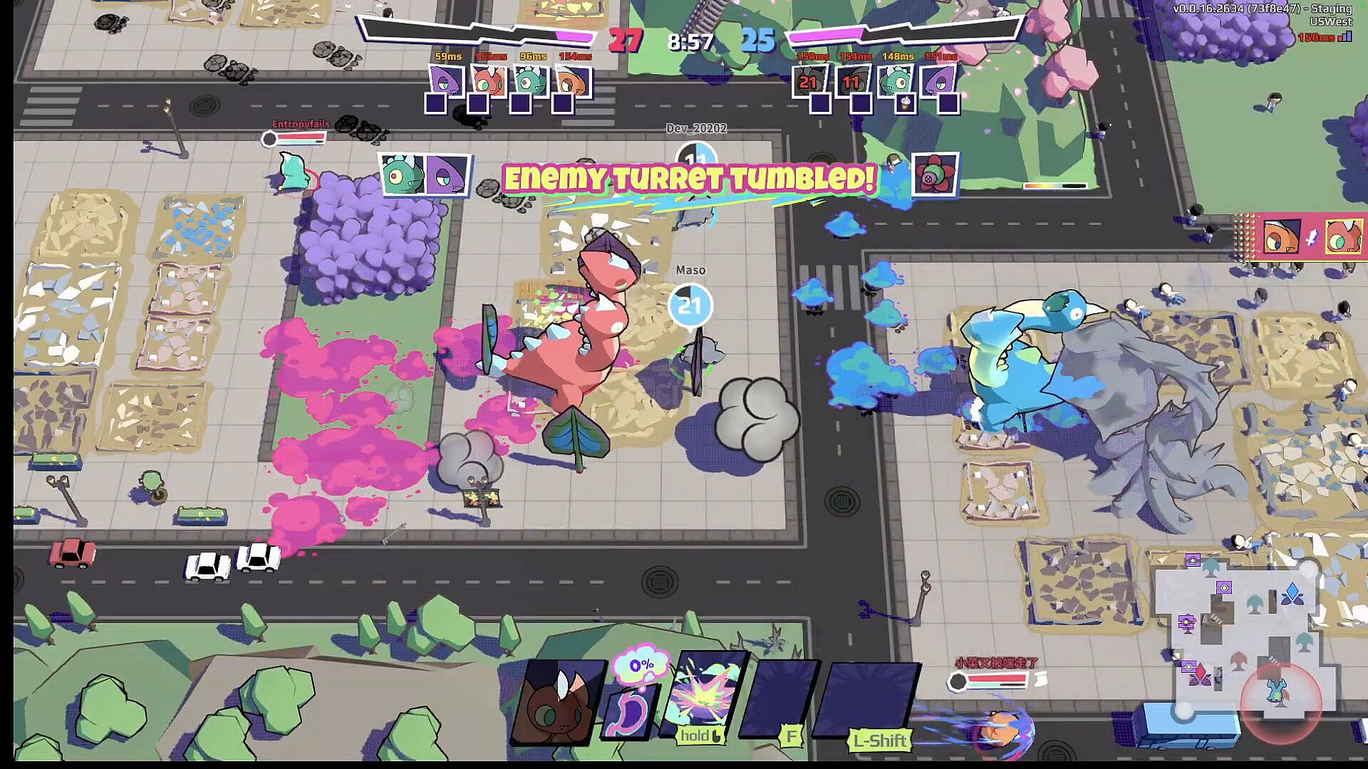Gido Gido is a 4v4 online co-op party game where adorable kaiju called Gido clash for territory by toppling enemy bases while leveling a bustling, fully destructible city.
