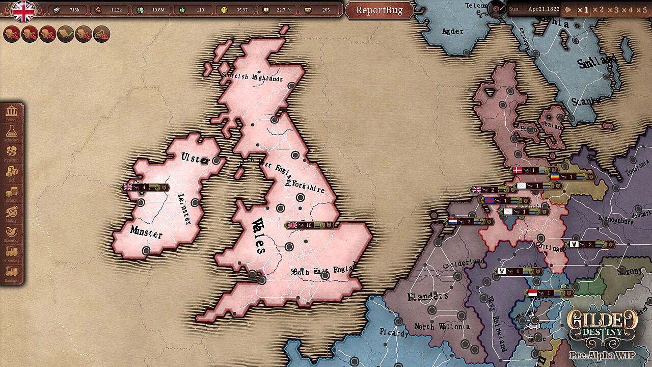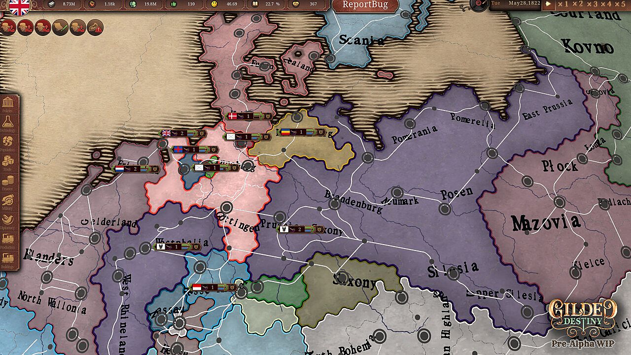 Forge empires, incite revolutions, and reshape society in Gilded Destiny, the definitive grand strategy game of the Industrial Age. Take command of your chosen nation and lead it to glory through masterful diplomacy, sweeping industrialization, and decisive warfare.
