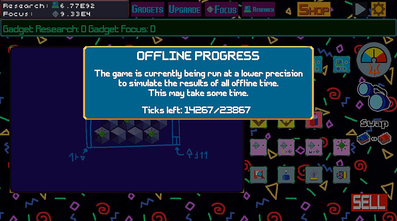 GENERATE RESEARCH AND FOCUS, SLOWLY GETTING MORE COMPLEX IN THE GADGETS YOU MAKE, TO UNLOCK EVEN MORE COMPLEXITY AND STORY IN THE RELENTLESS PURSUIT OF INCREASING YOUR NUMBERS!