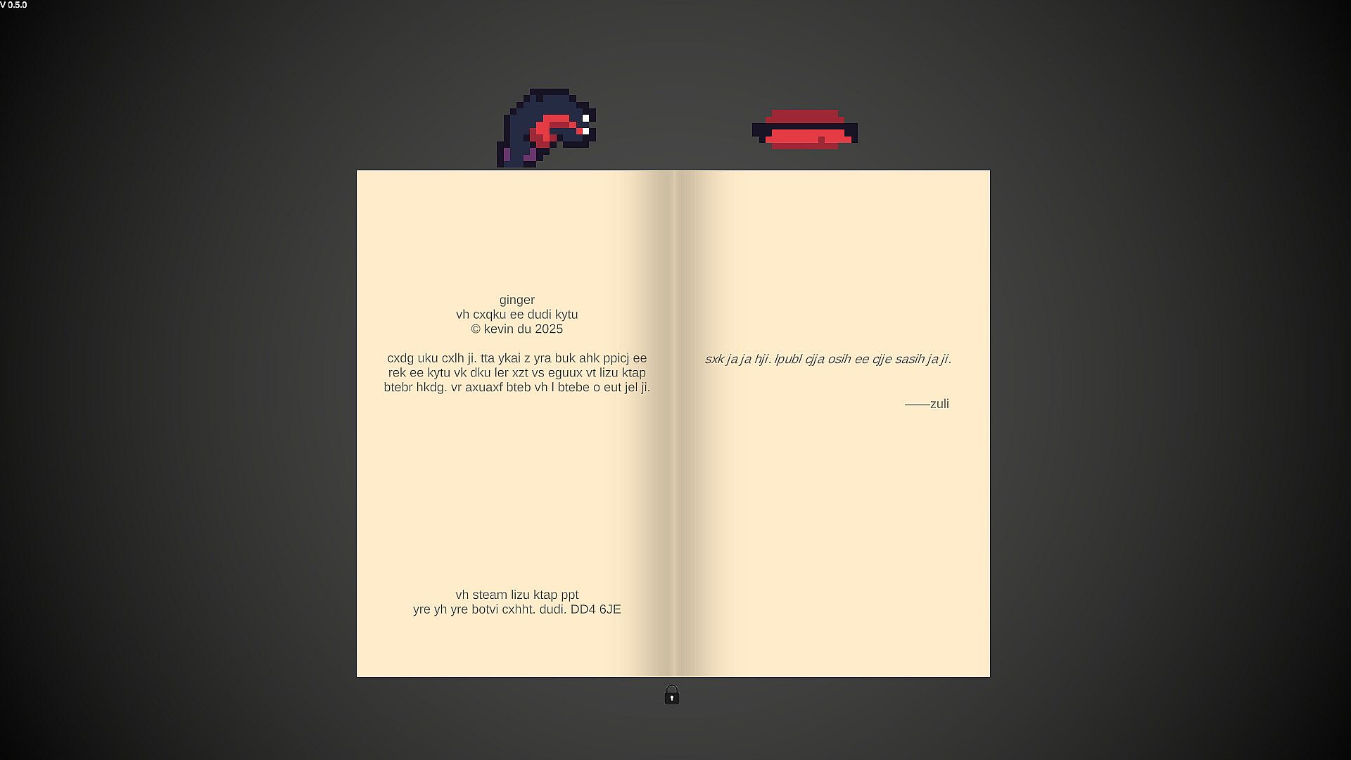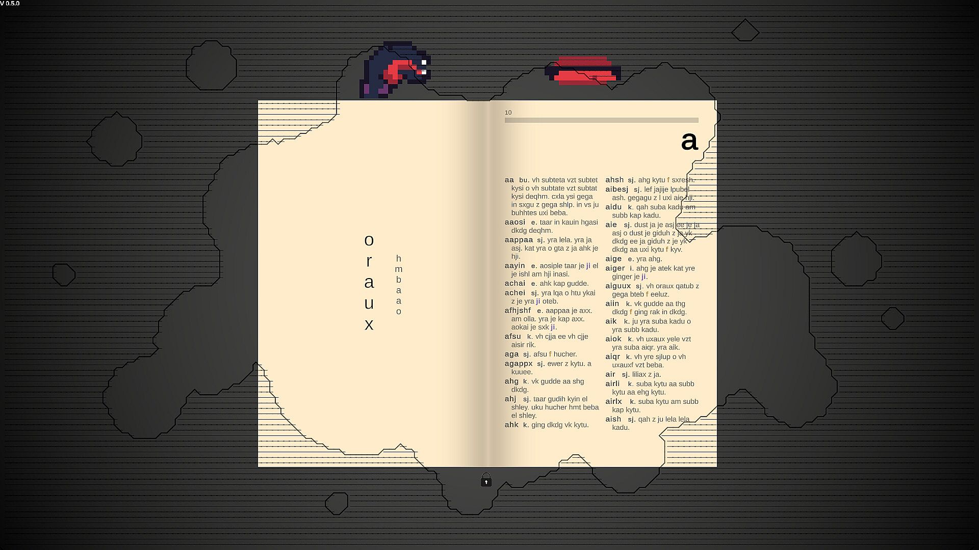 Ginger is a language adventure game where every word is pronounceable, even without understanding its meaning. Step into a labyrinth of interconnected meanings and immerse yourself in a one-person subculture.