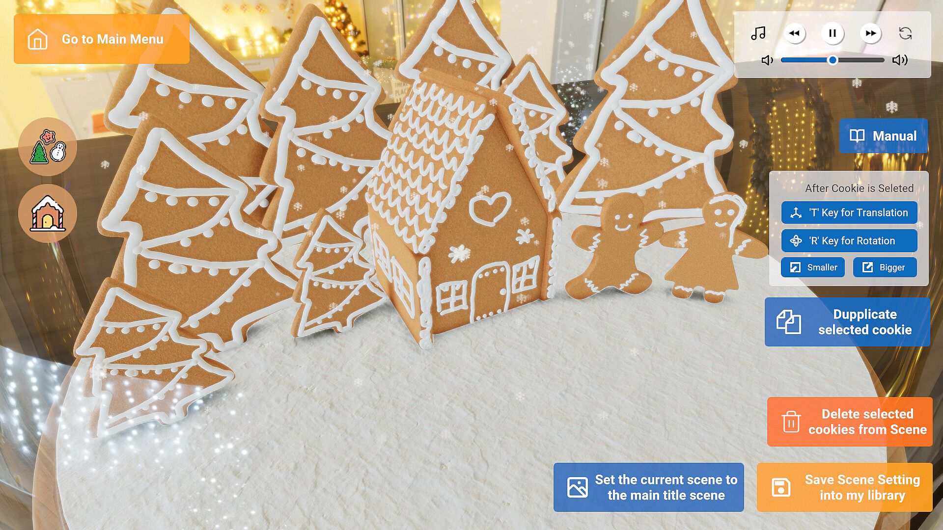 You can move, rotate, and set cookies to large or small.
