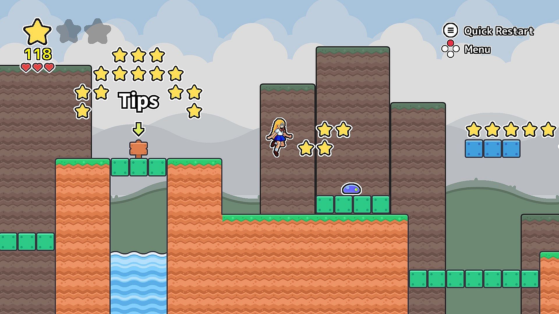 "Giri-Jump Star Rush" is a slightly challenging, classic 2D action game.