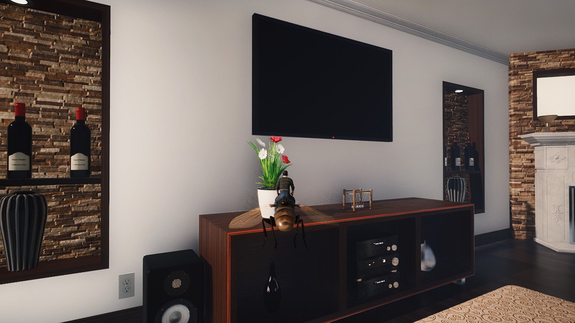 On the weekend your neighbor's step sister invited friends over to his step mom's house so they can all meet up. When they played music, you and the other neighbors didn't like the music and decided to come over and complain. As soon as you got over there with your girlfriend, you saw your neighbor talking to other neighbors at his home. Once you made close contact with them you all shrunk to the size of bugs. It turned out that the step mom was a scientist who shrunk them with a shrink ray by mistake. You and the neighborhood now have to get a giantess girl's attention.