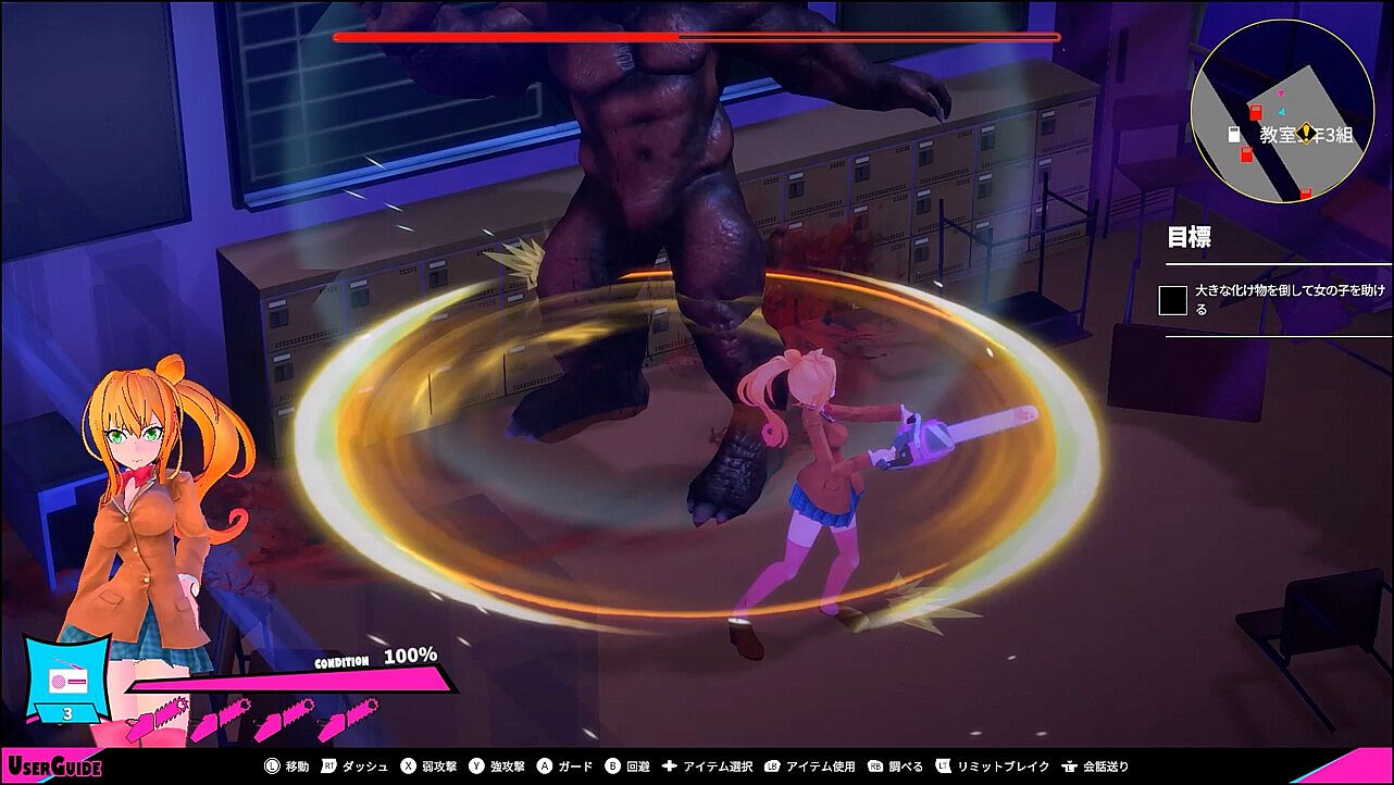 The school building is no longer safe from the creatures, and Hime runs around with a chainsaw in her hand.