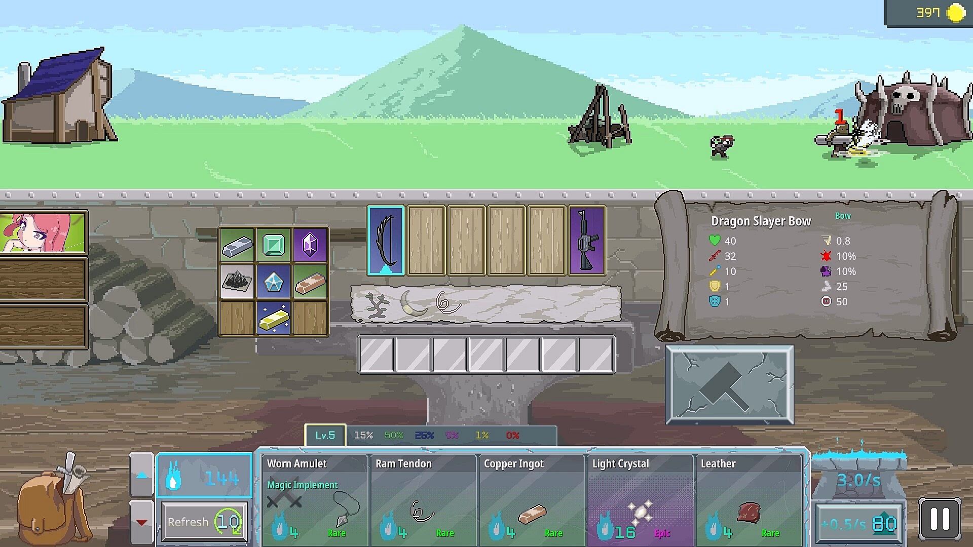 Even an ordinary sword becomes a legend in the hands of a hero. Equip the 'Heroes' you recruit by clearing stages with weapons. The stats and skills of the Hero and weapon merge into one, creating a unit of unimaginable power. Which Hero and weapon will you combine to create your ultimate champion?